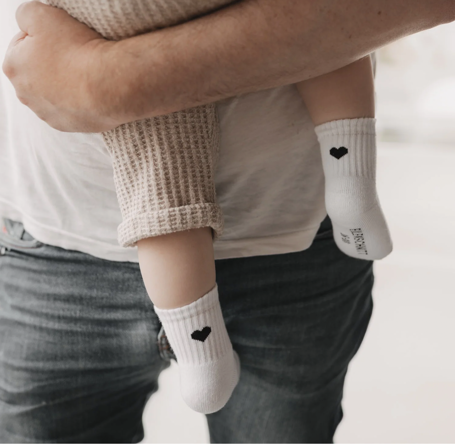 Unsere Babysocken (3 Monate (Größe 16 - 18)) mit schwarzem Herz lassen kleine und große Herzen höherschlagen! Mit ihrem minimalistischen Design und dem kontraststarken, eingestickten Herz auf dem Bündchen sind sie ein echter Hingucker für die Allerkleinsten.