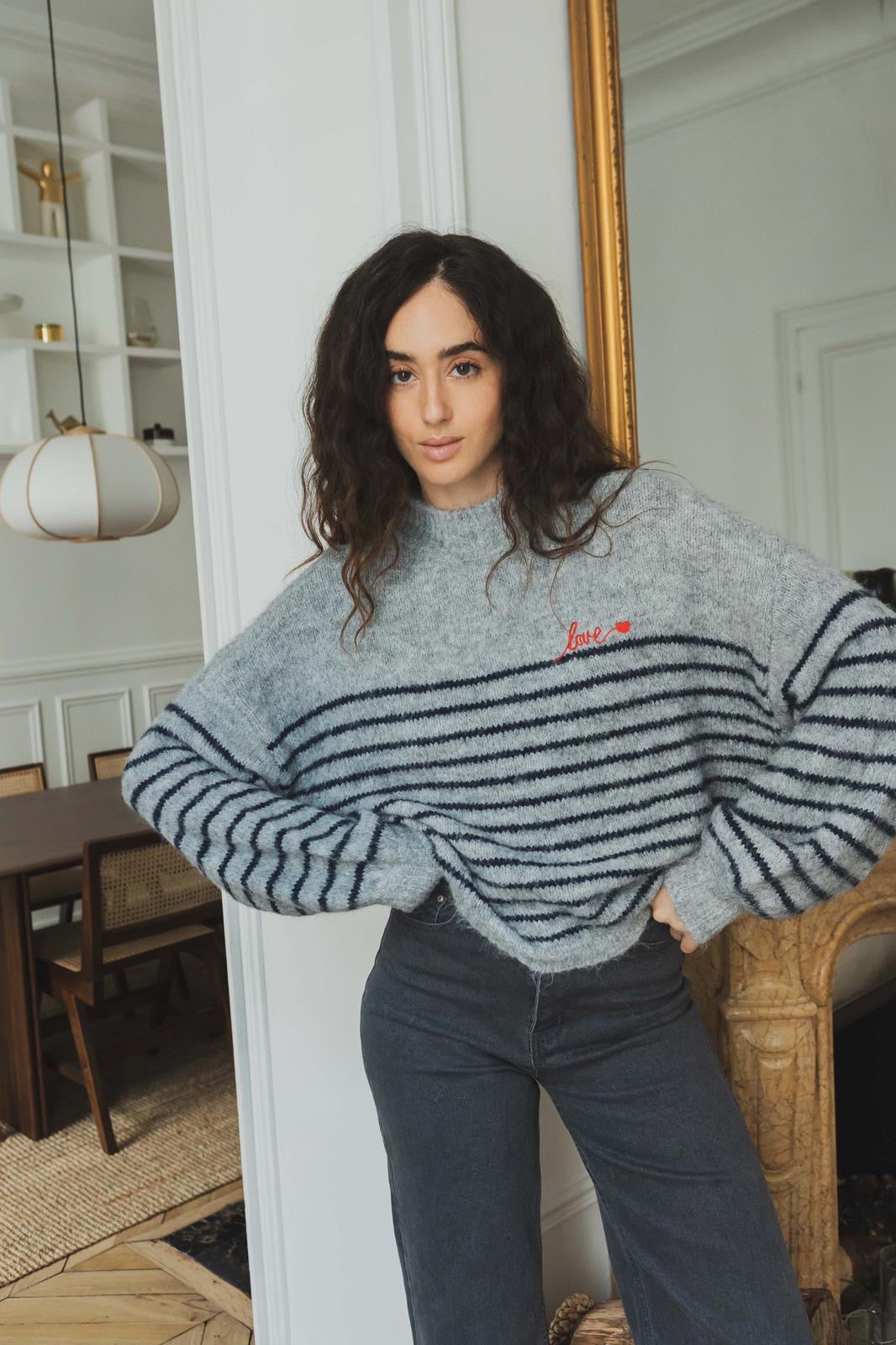 - Pullover mit schwarzen Streifen und dezentem "love" Schriftzug in Rot