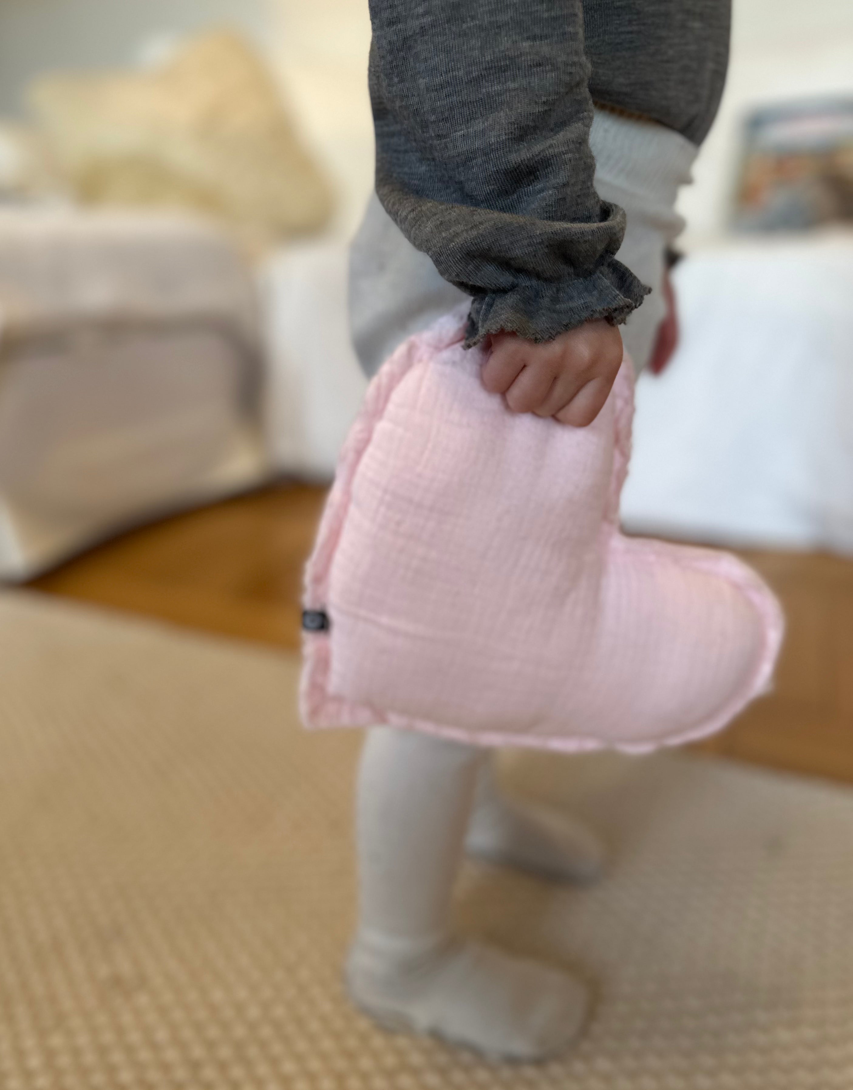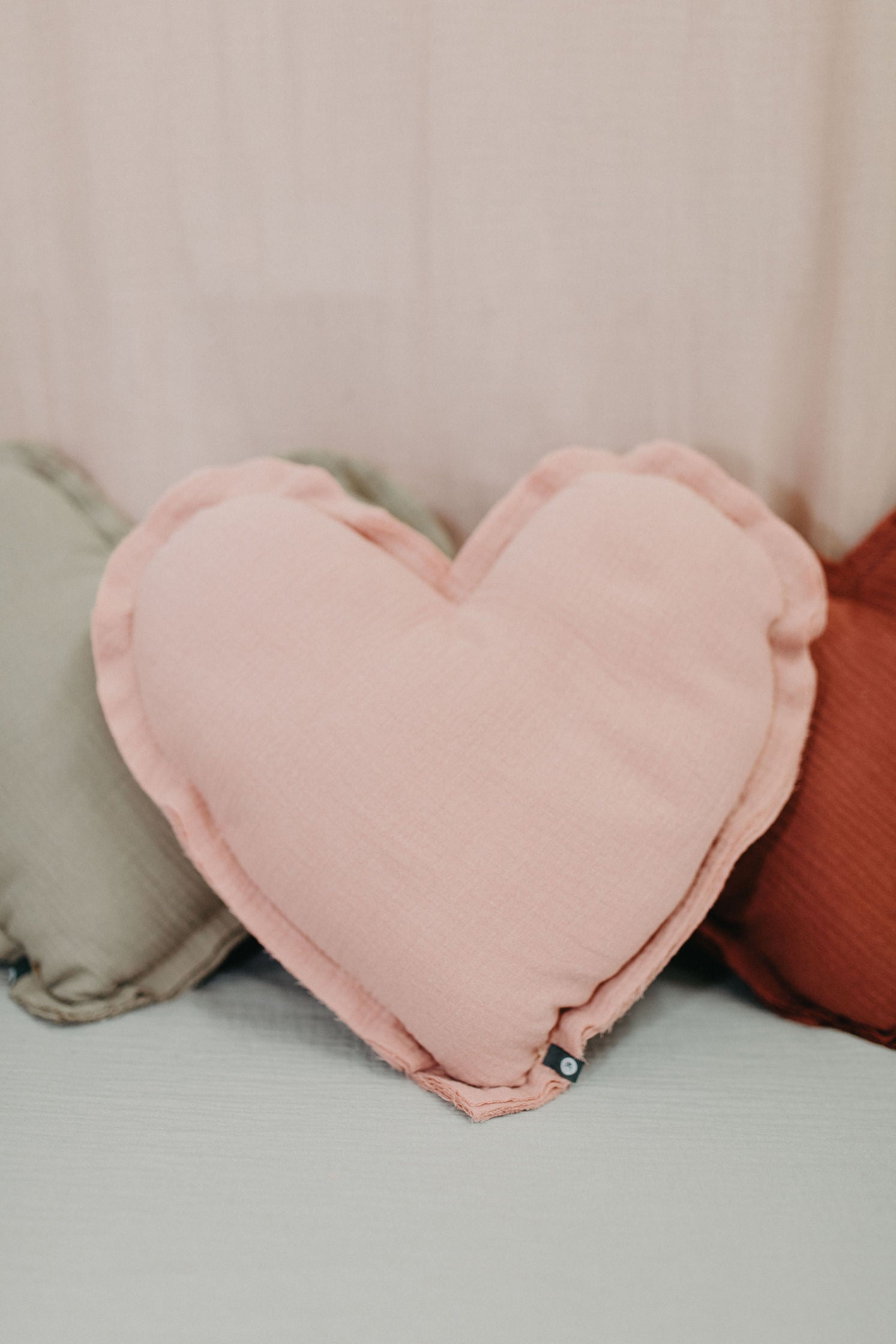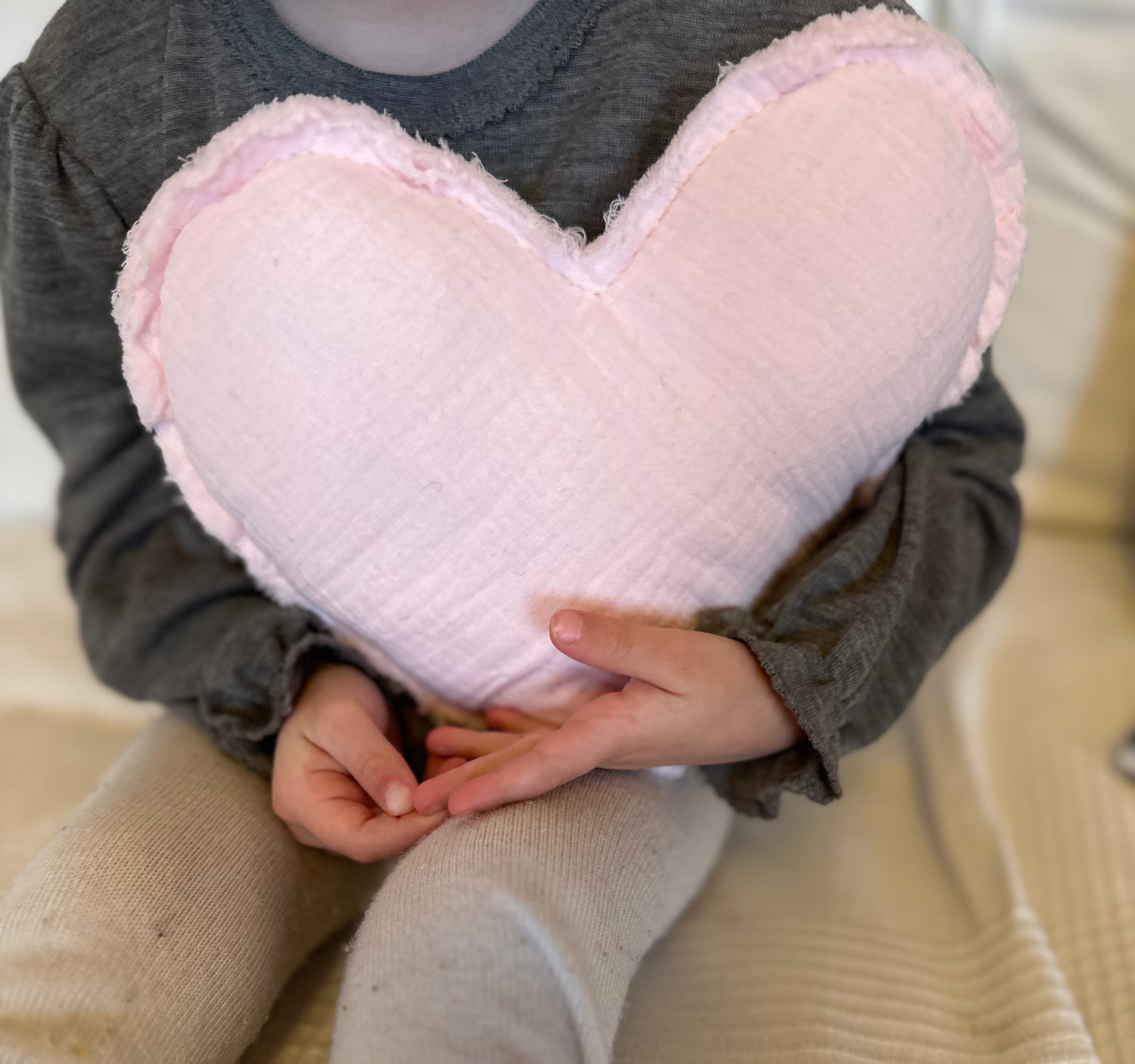 liebevoll von Hand genähtes Kinderkissen in Herzform