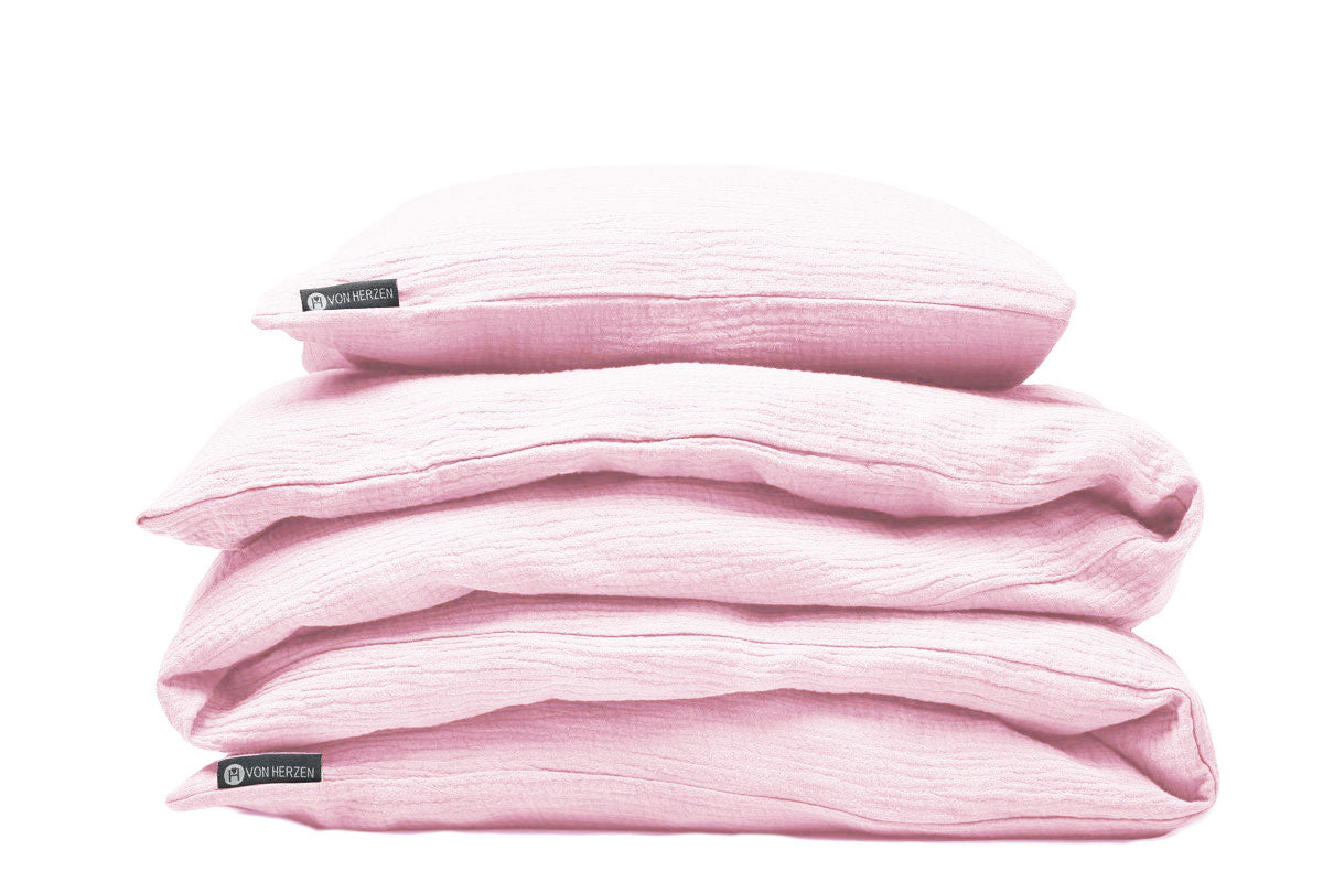 Du bist auf der Suche nach einer unkomplizierten, einfarbigen Kinderbettwäsche, die super kuschelig weich und hautsympathisch ist? Dann wirst du die Struktur unserer liebevoll von Hand genähten Musselin Bettwäsche aus reiner Bio-Baumwolle lieben! Musselin ist der perfekte Stoff für zarte Kinderhaut und sorgt für eine Wohlfühlatmosphäre im Kinderzimmer.