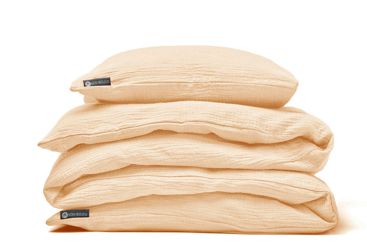 Unsere Handmade Musselin Bettwäsche ist die perfekte Ergänzung für dein Schlafzimmer und schafft im Handumdrehen eine kuschelige Wohlfühlatmosphäre.