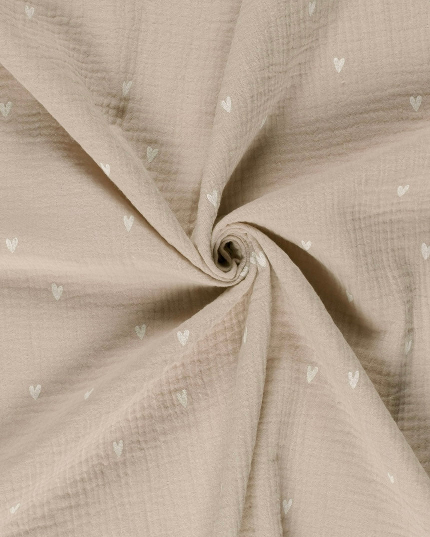 MUSSELIN BETTWÄSCHE BEIGE MIT WEISSEN HERZCHEN