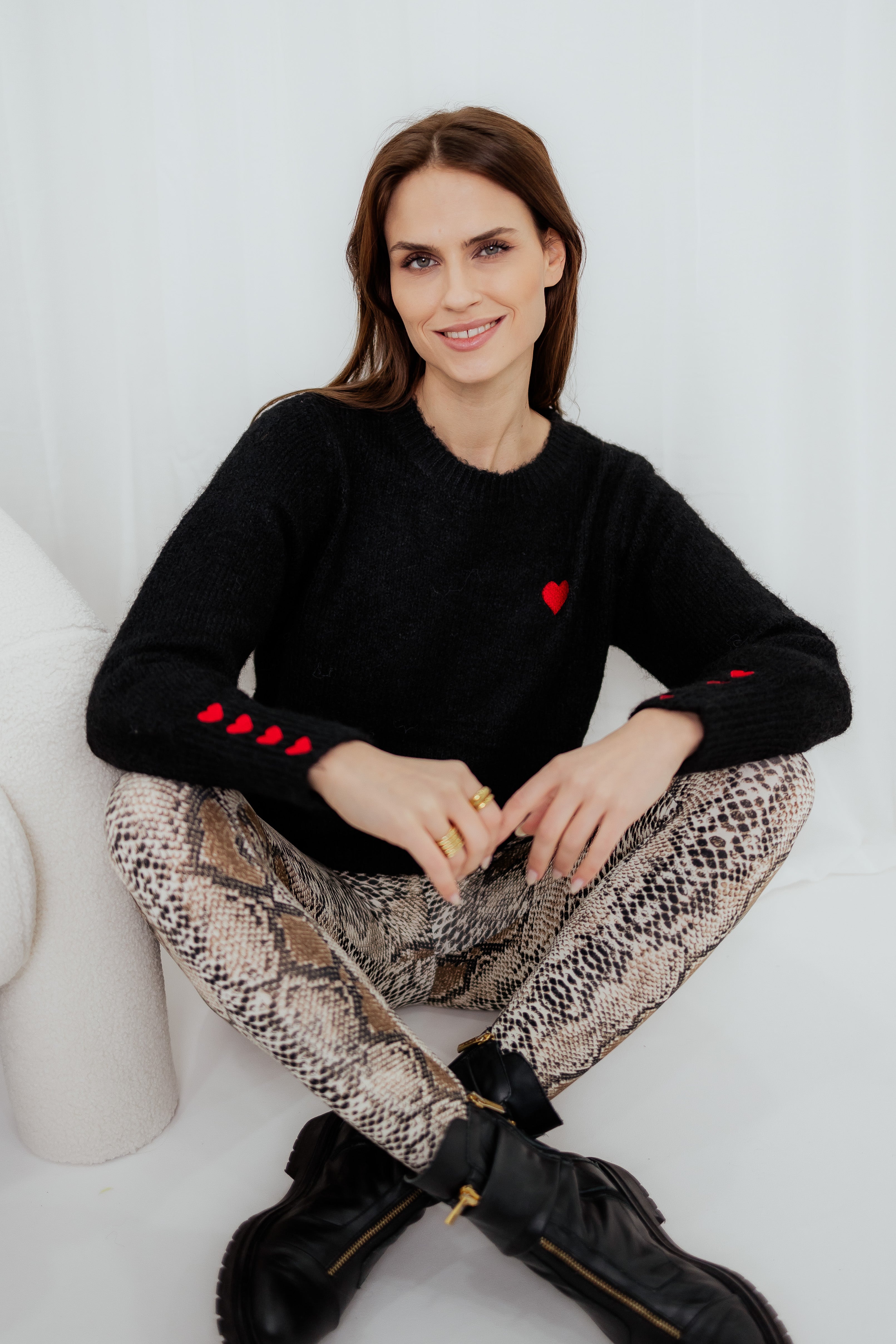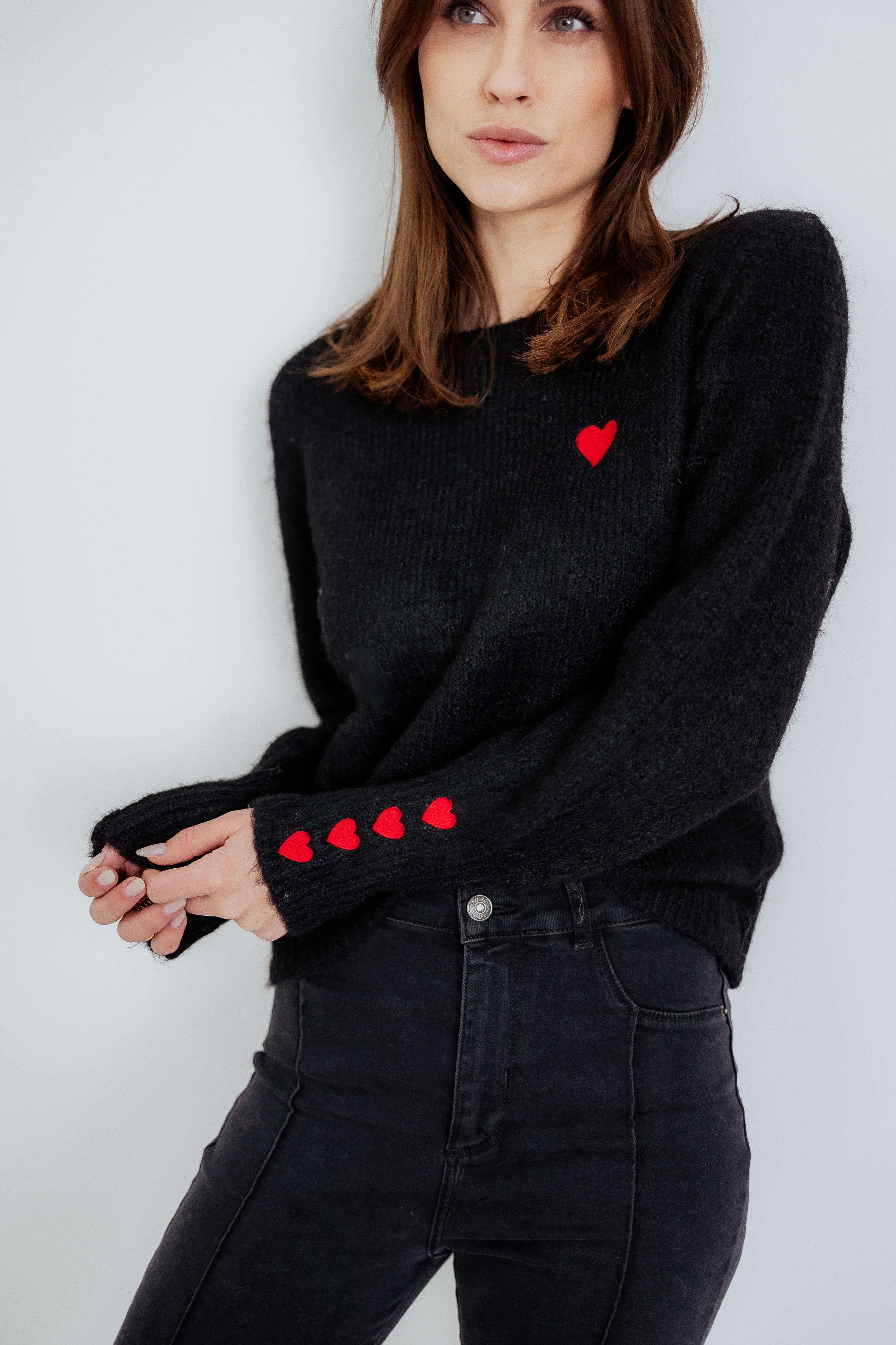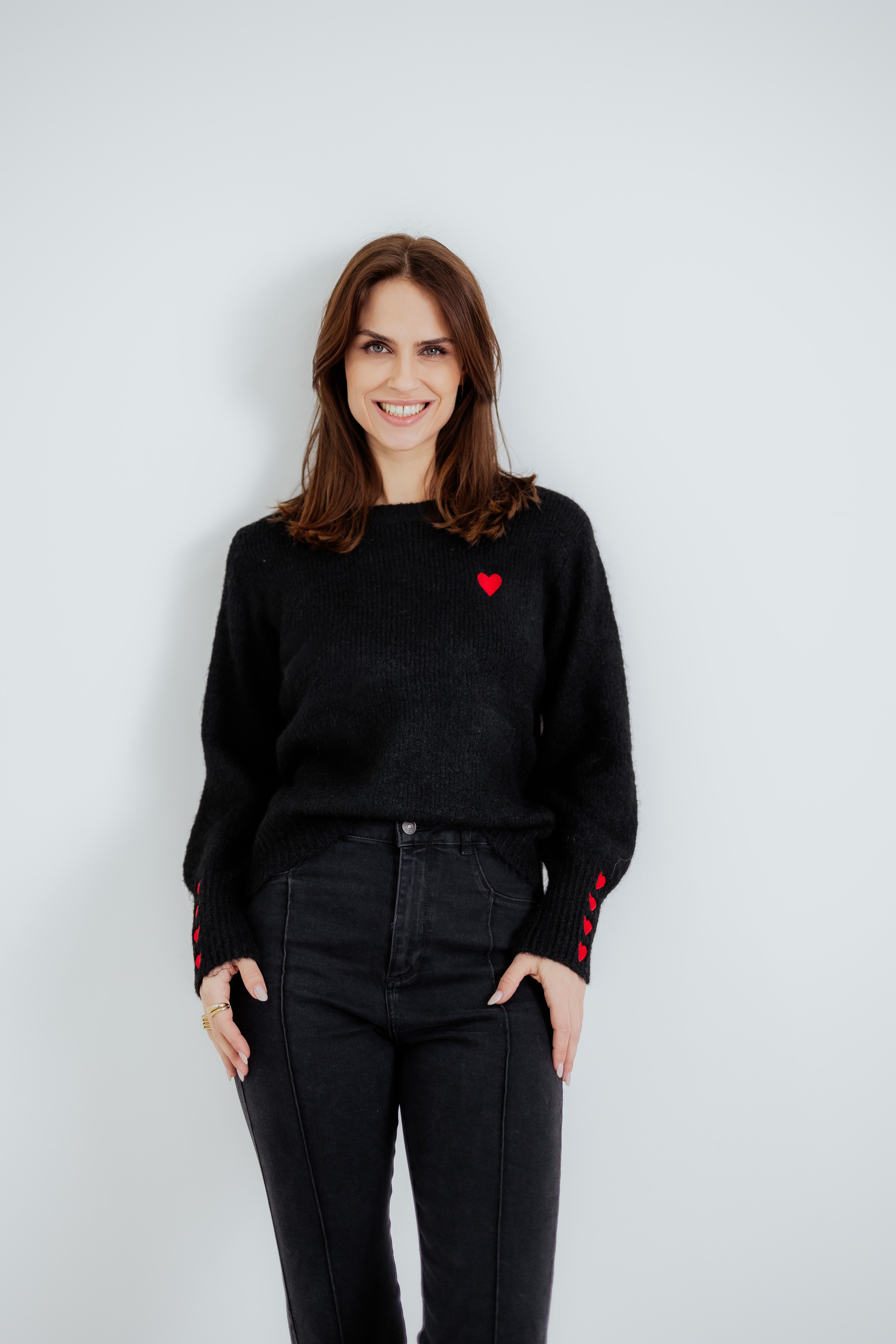 - Herz auf der linken Brustseite und an den Bündchen am Ärmel