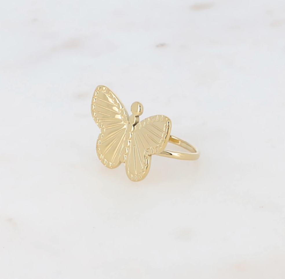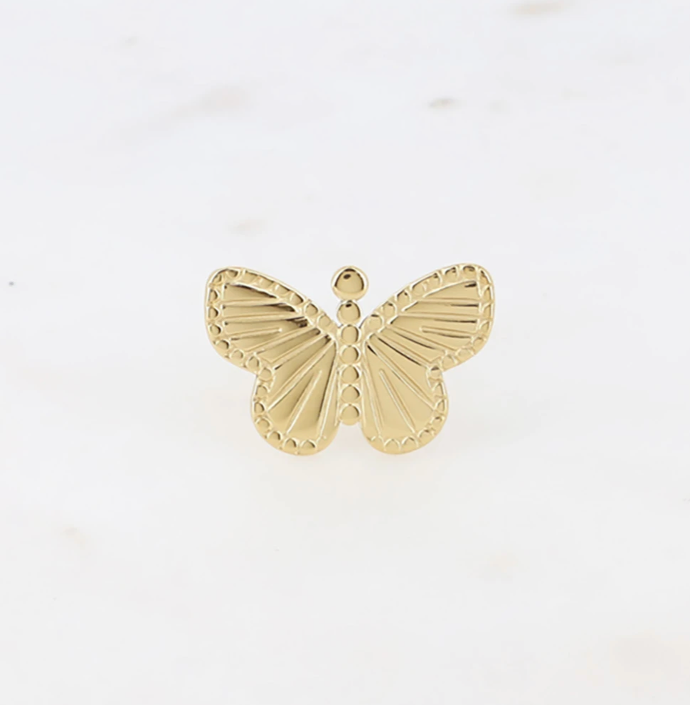Edelstahlring mit einem großen, strukturierten Schmetterling.