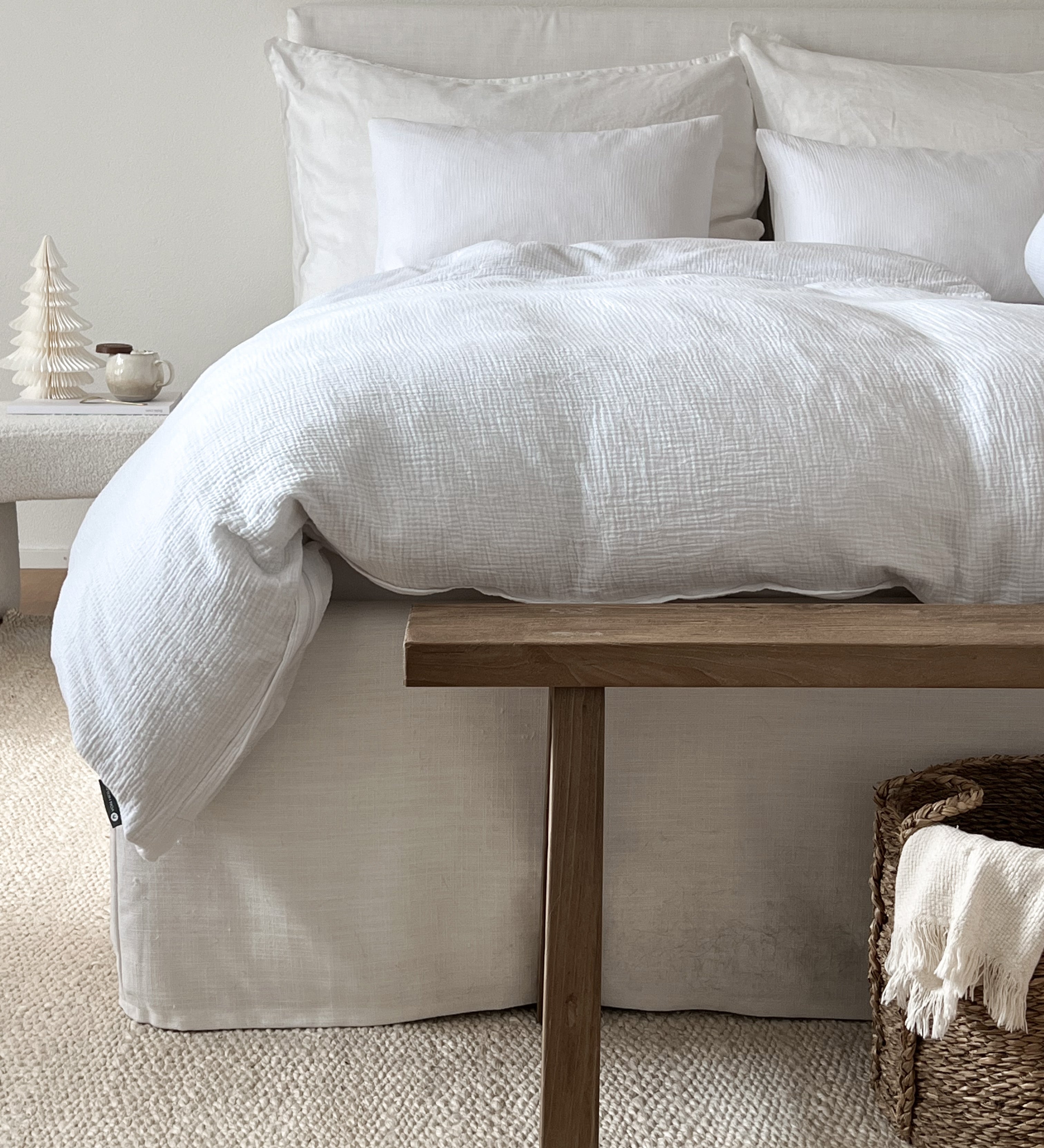 Handgenähte Bettwäsche aus Musselin für Erwachsene und Kinder.