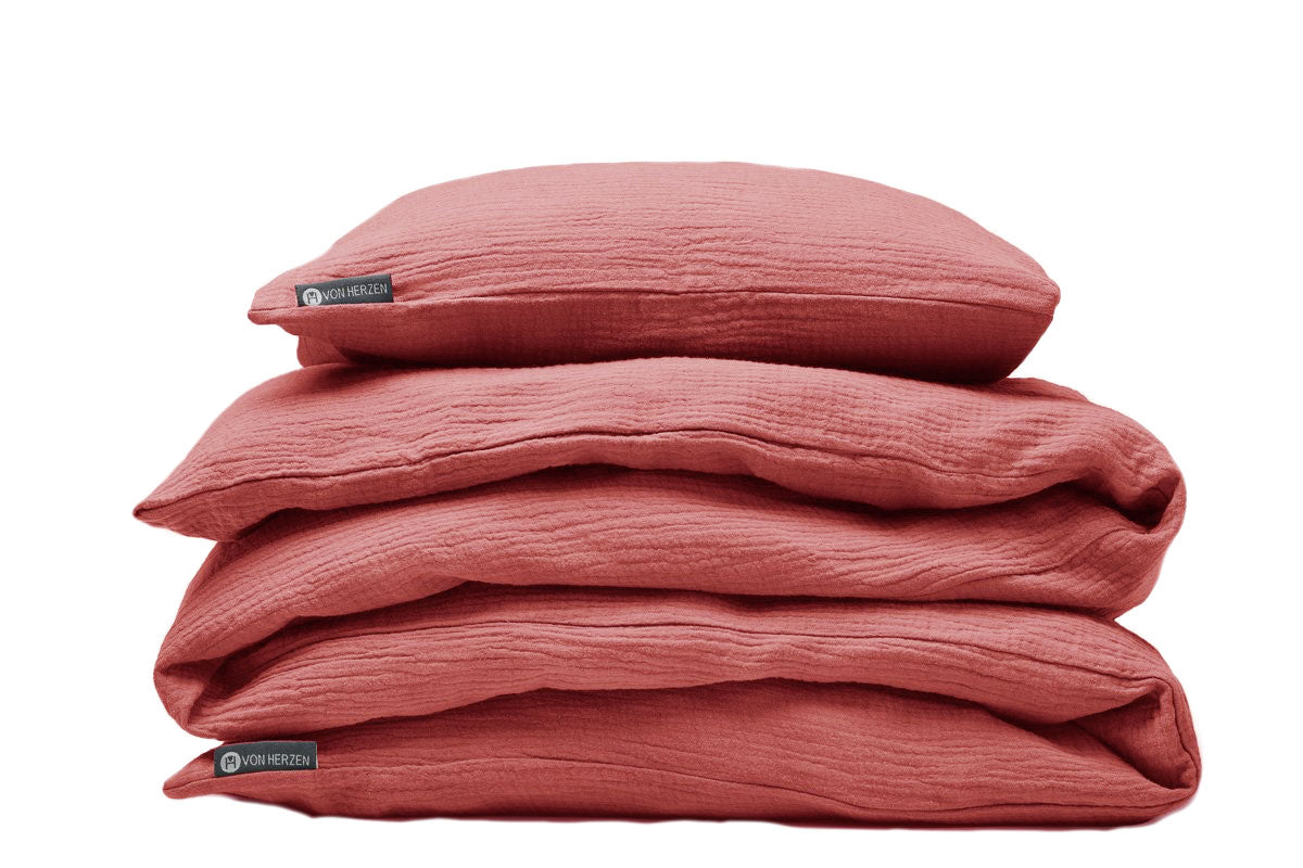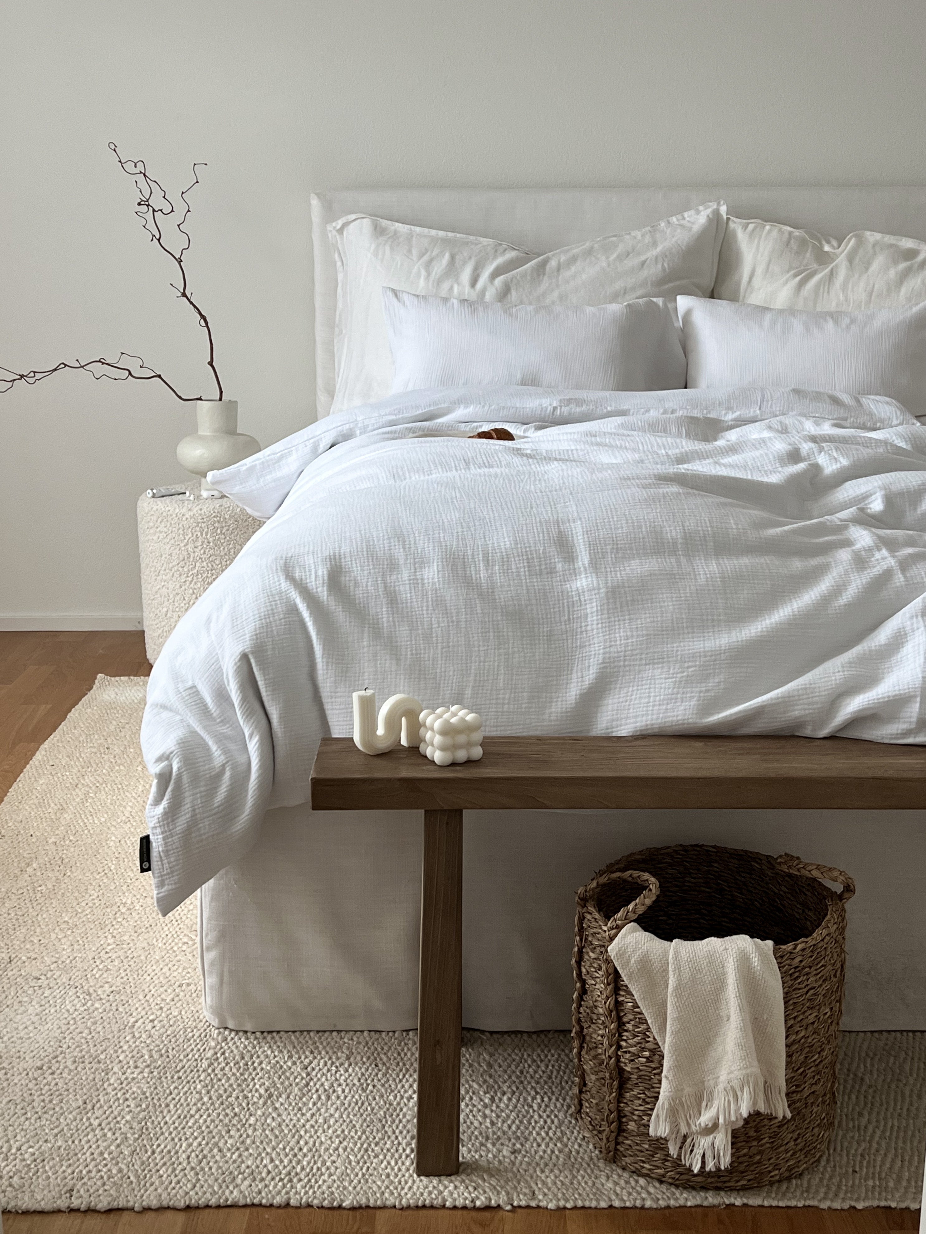 Unsere Handmade Musselin Bettwäsche ist die perfekte Ergänzung für dein Schlafzimmer und schafft im Handumdrehen eine kuschelige Wohlfühlatmosphäre.