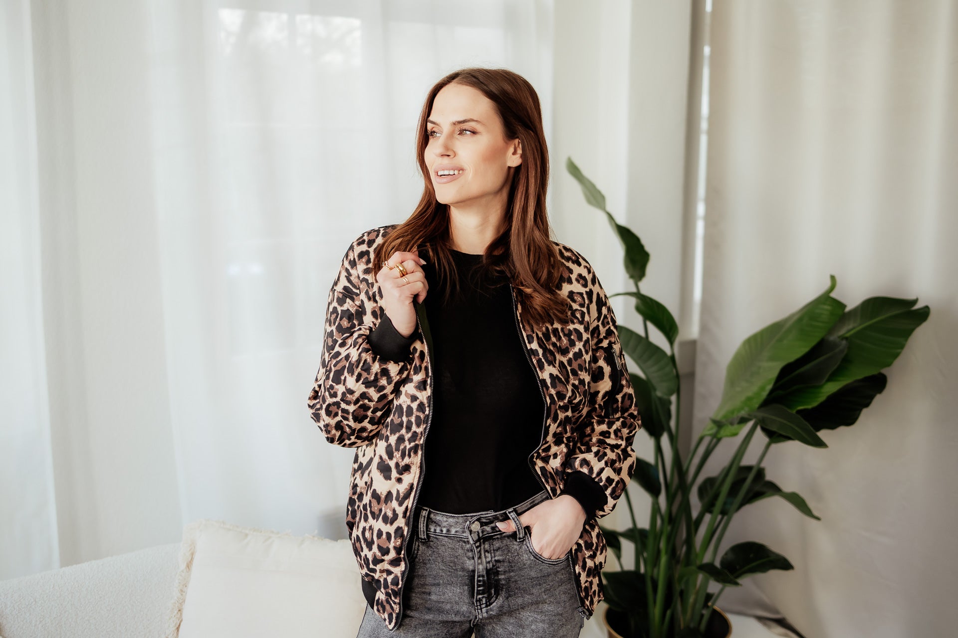 - Farben/Muster: einfarbig (schwarz oder khaki) und Leo