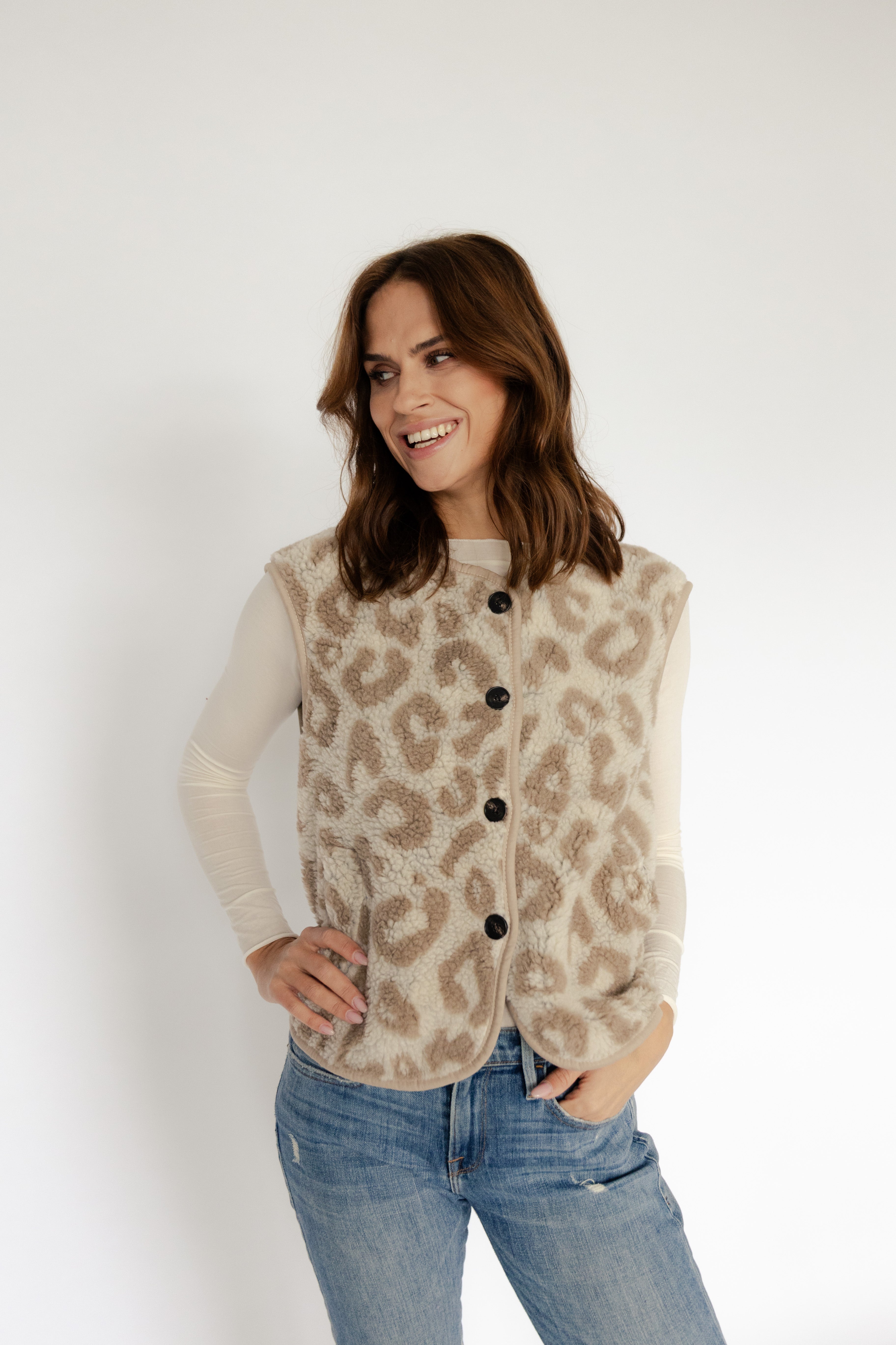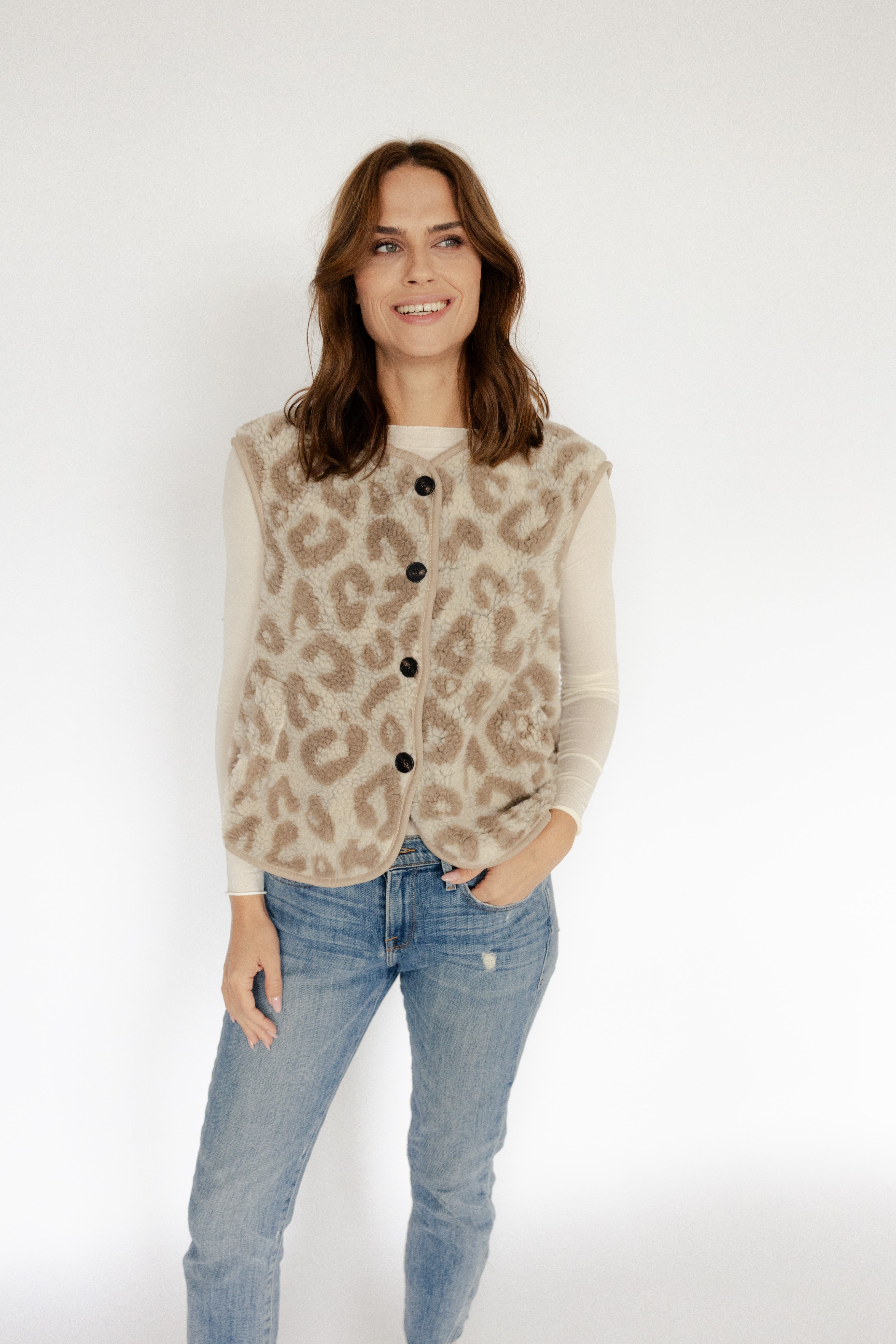 • weiche Teddyweste mit Leoprint