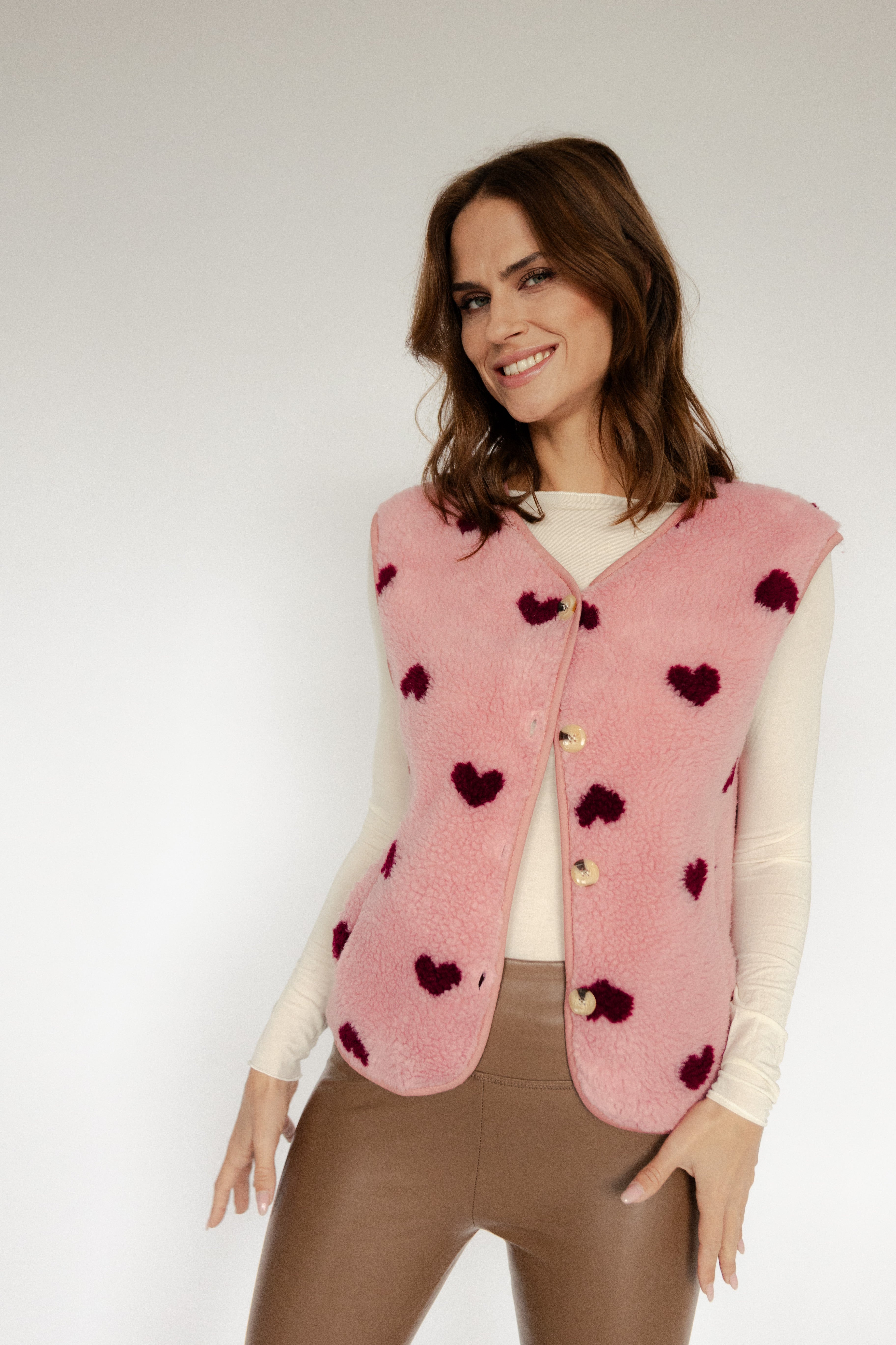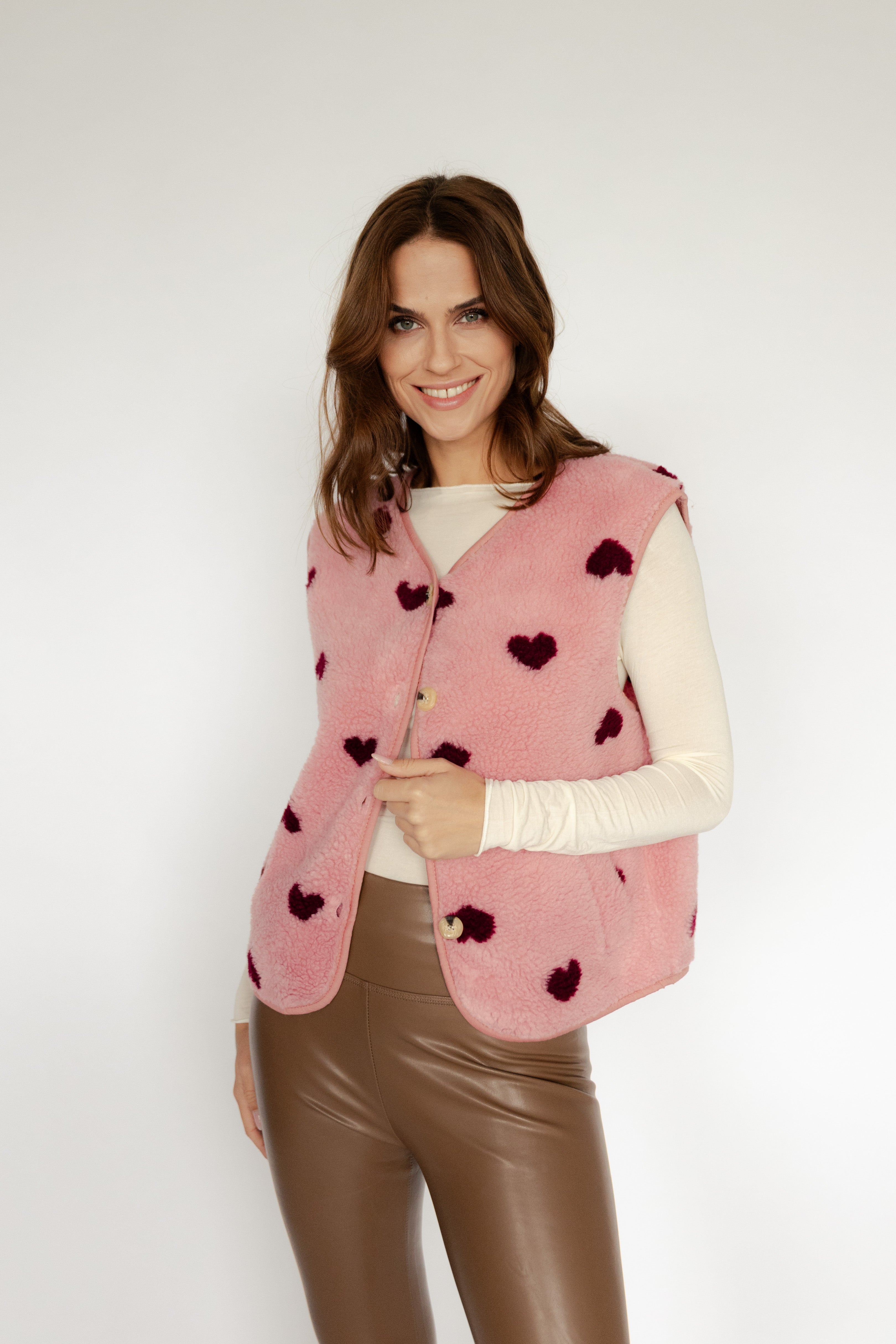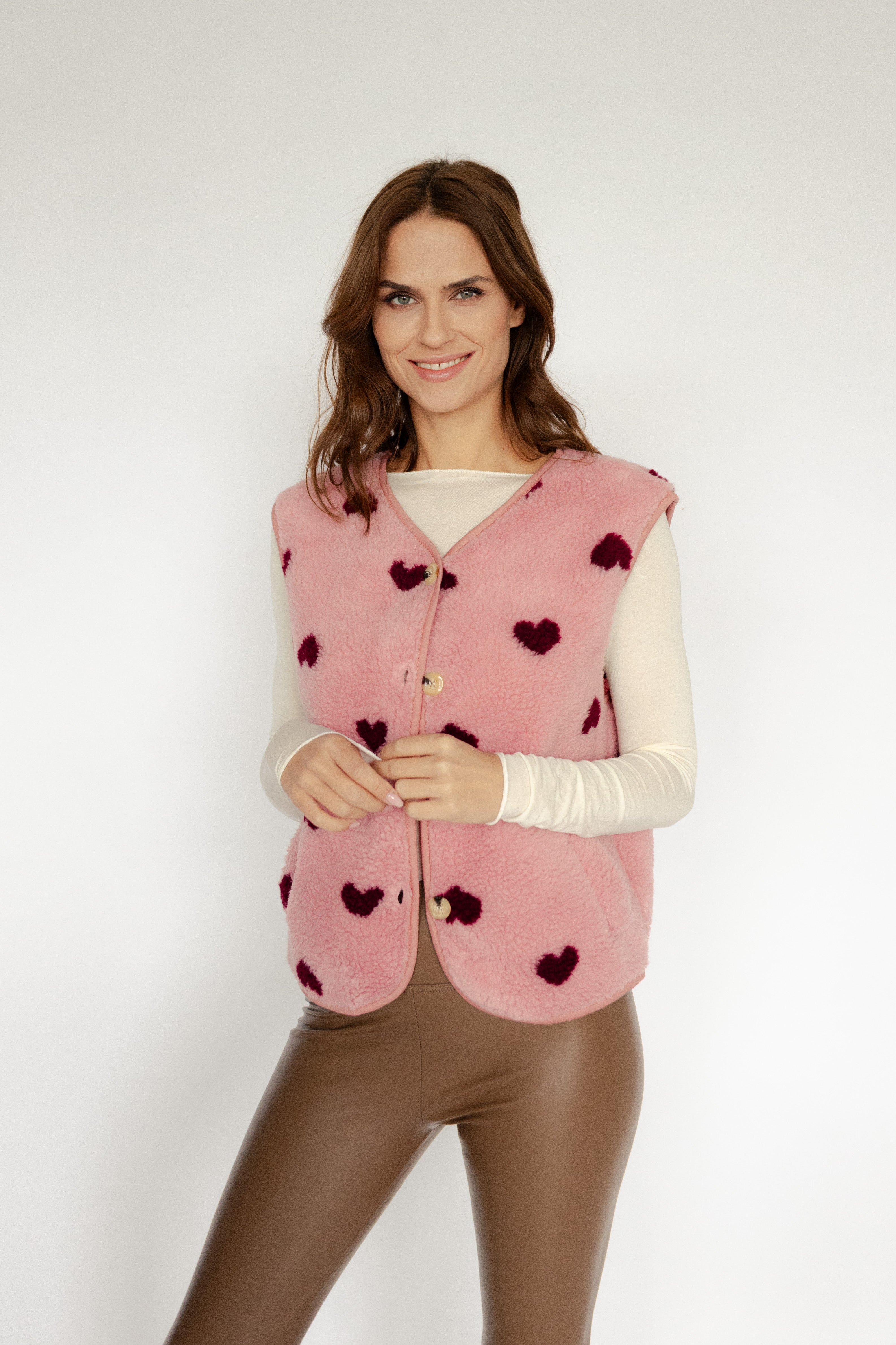 - weiche Teddyweste mit Herzchenprint