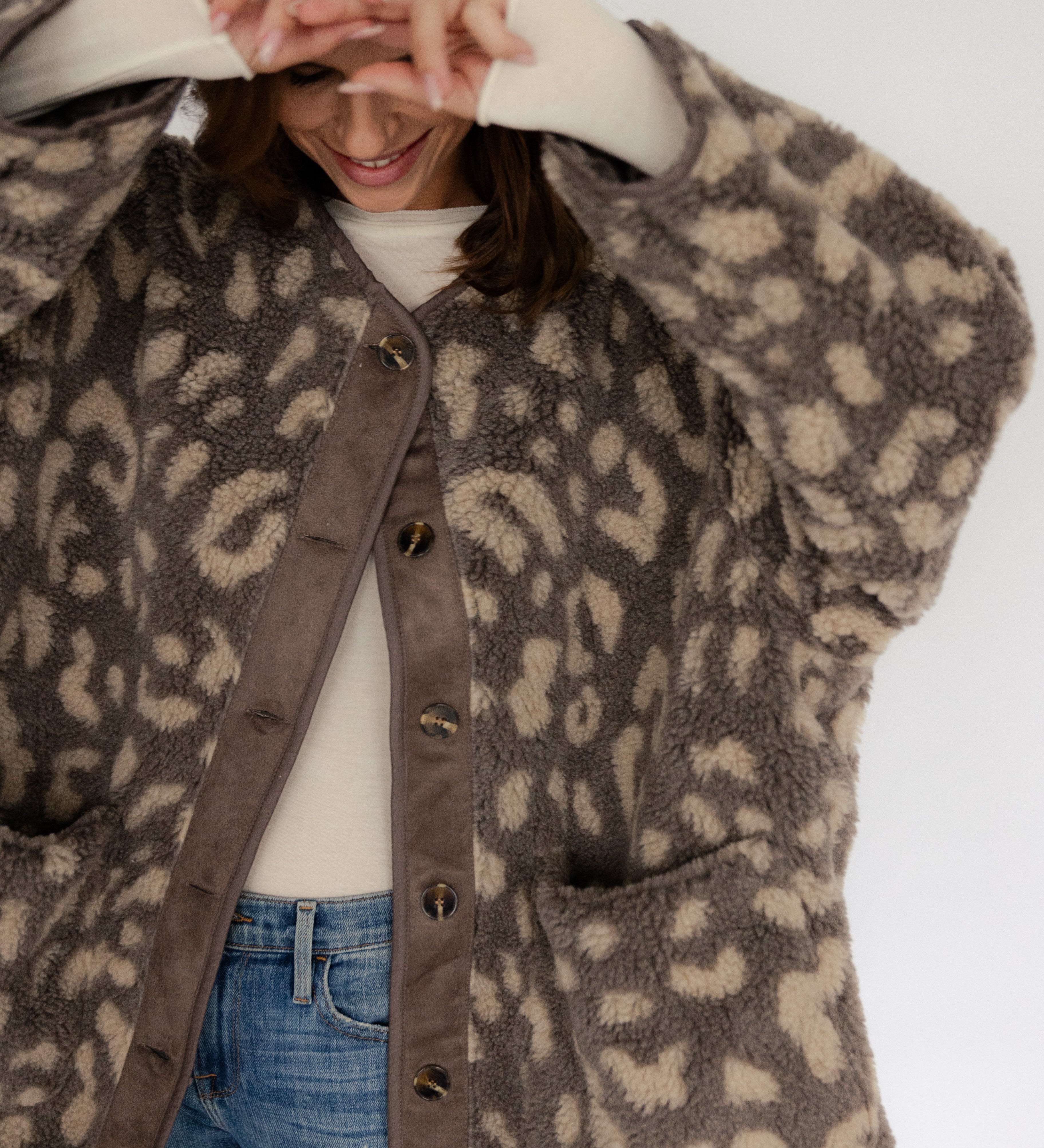 OVERSIZE LEOJACKE IN TAUPE