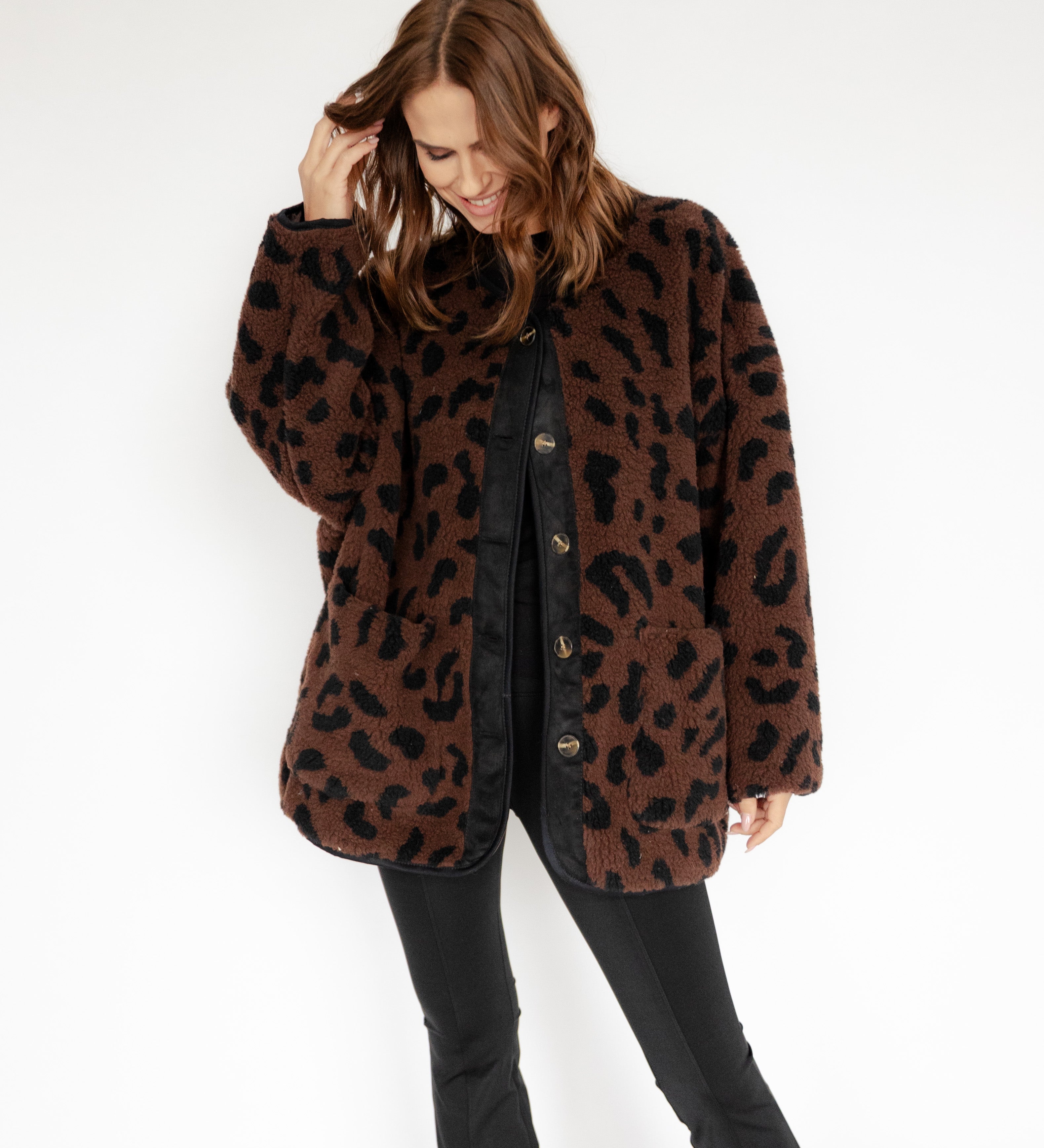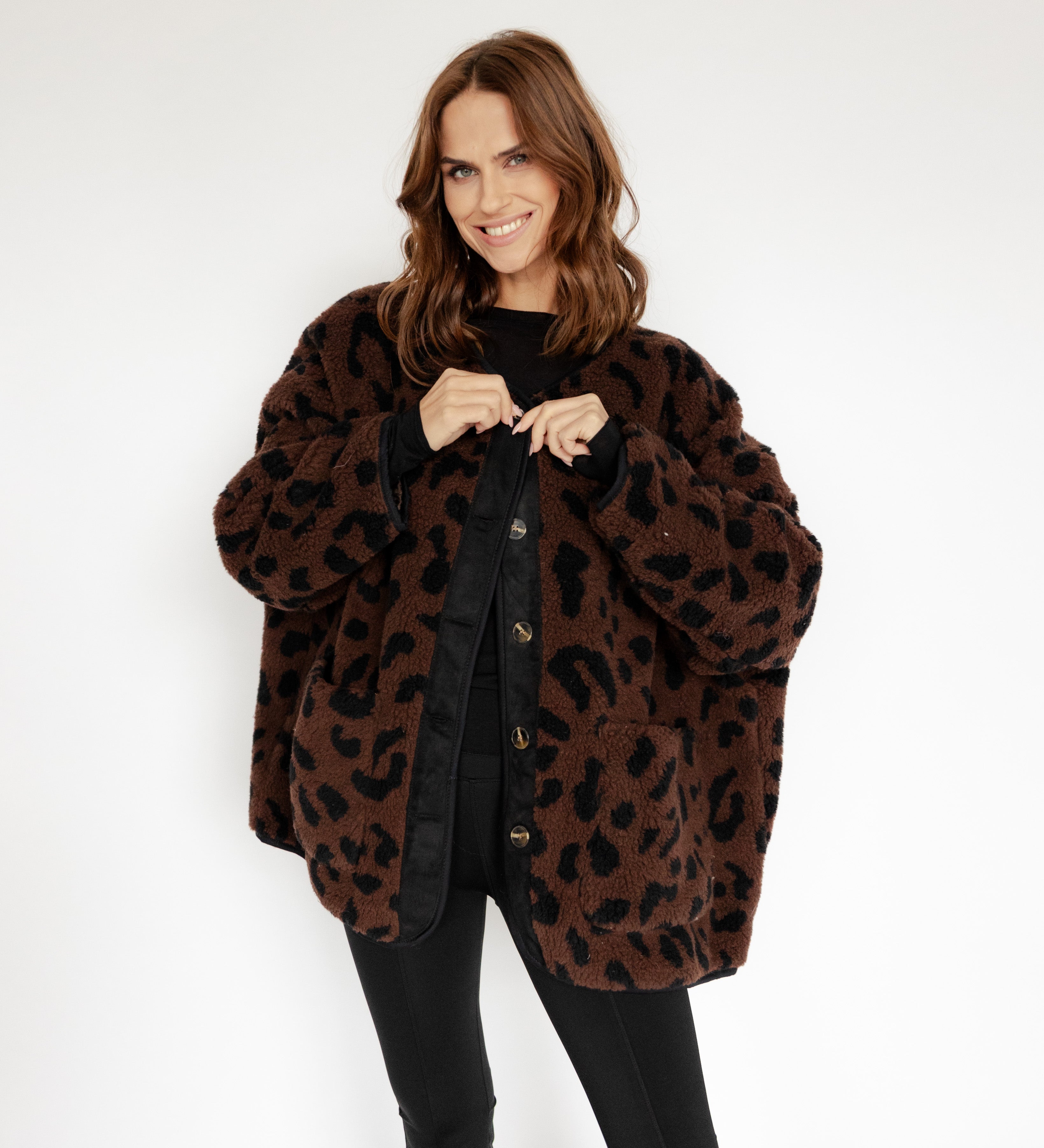 OVERSIZE LEOJACKE IN SCHOKOBRAUN