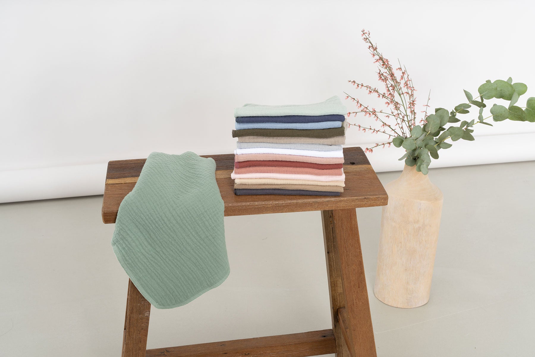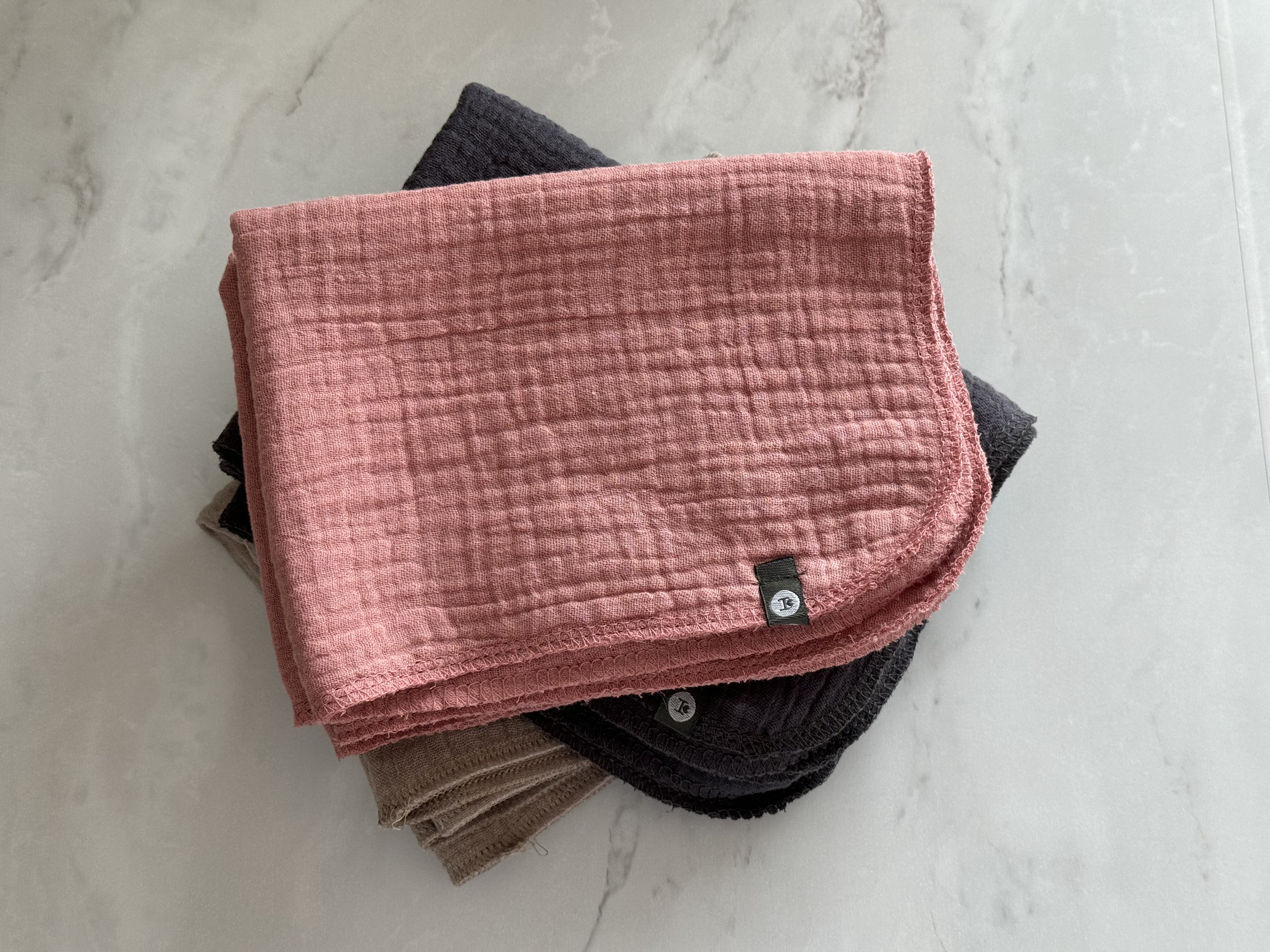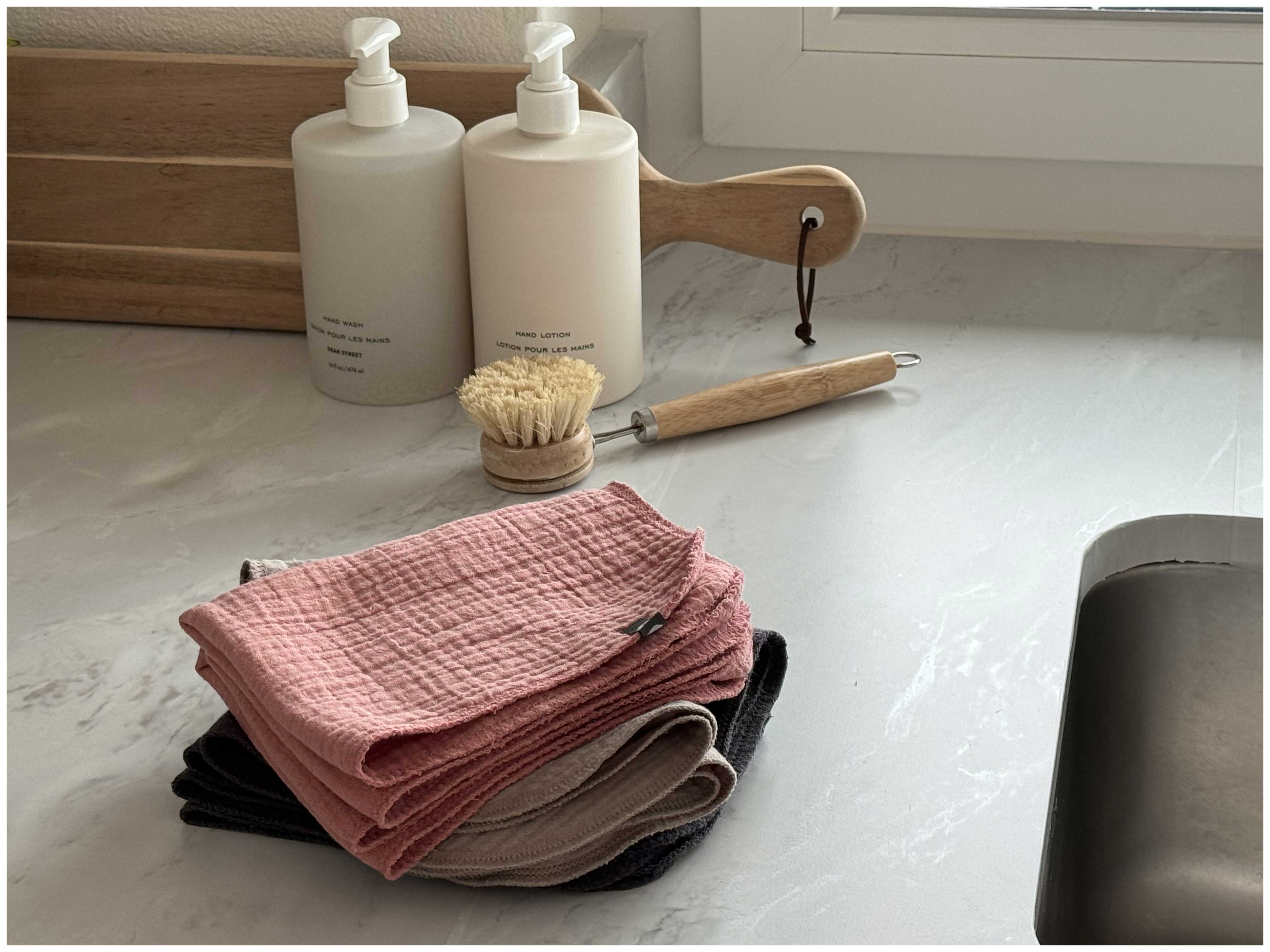 Unsere handgenähten Putzlappen aus Musselin sind ein Allroundtalent, denn du kannst sie als Spüllappen in der Küche verwenden oder als Putzlappen im Badezimmer. Der weiche Musselinstoff ist extrem saugfähig und schnelltrocknend.