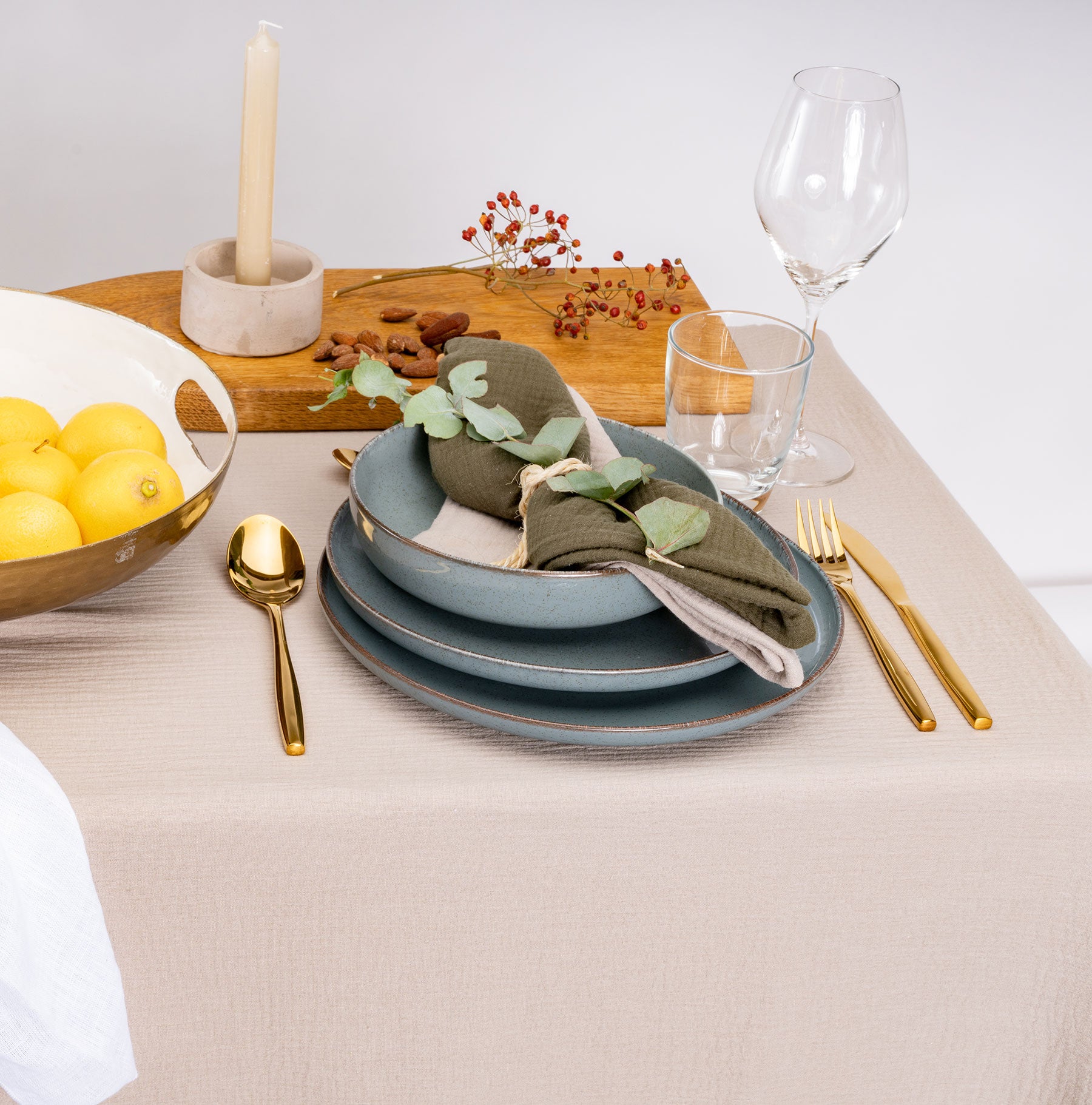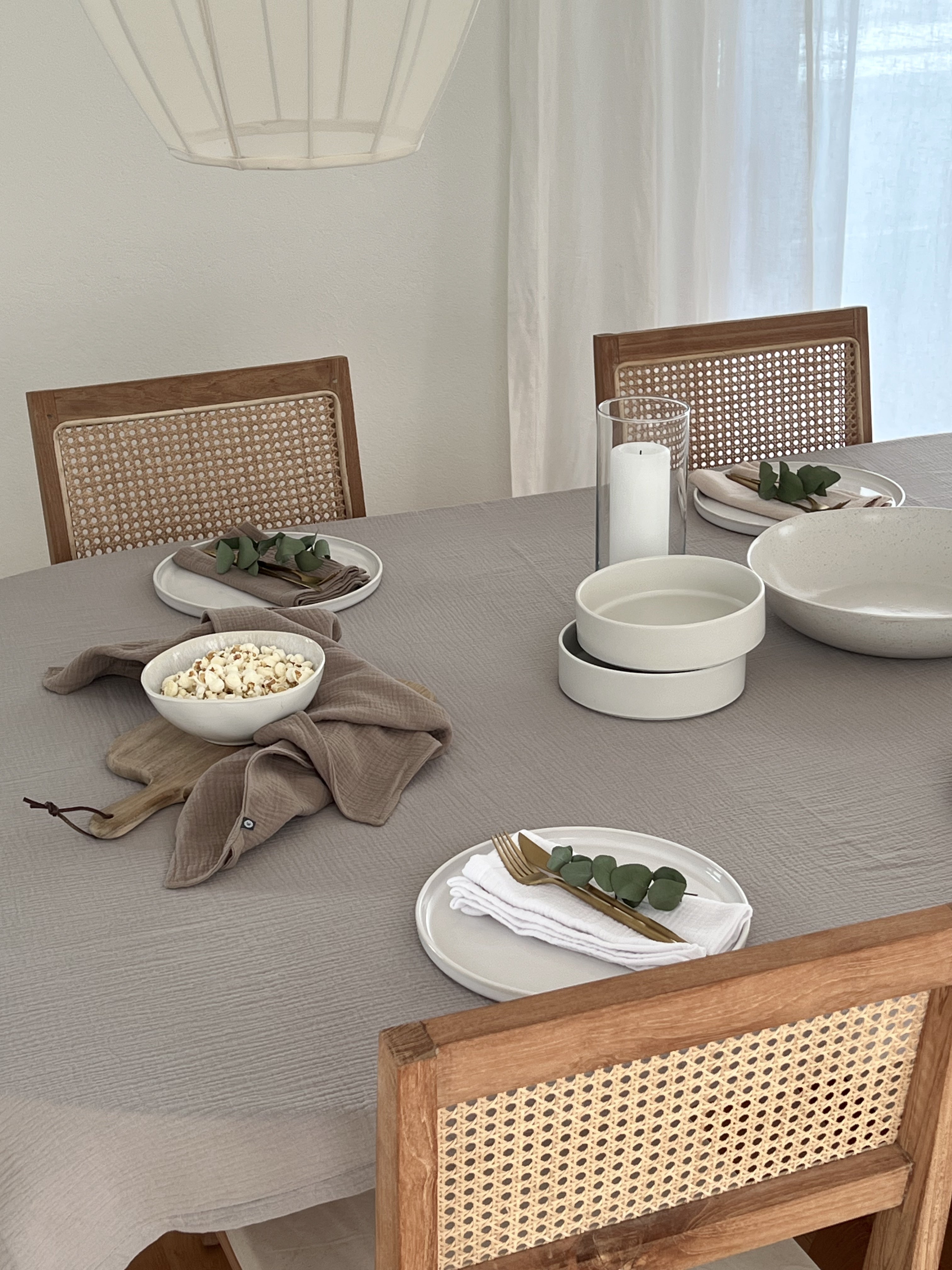 Ob als Tischdecke für den Alltag oder für eine schön gedeckte Tafel: Unsere handgenähte Tischdecke aus weichem Musselin ist ein echter Allrounder und sorgt für Gemütlichkeit und Wohnlichkeit.