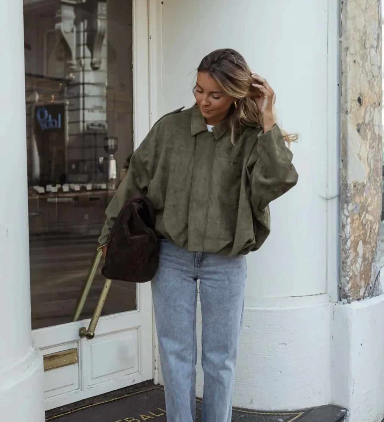 KURZE WILDLEDER-JACKE TAUPE