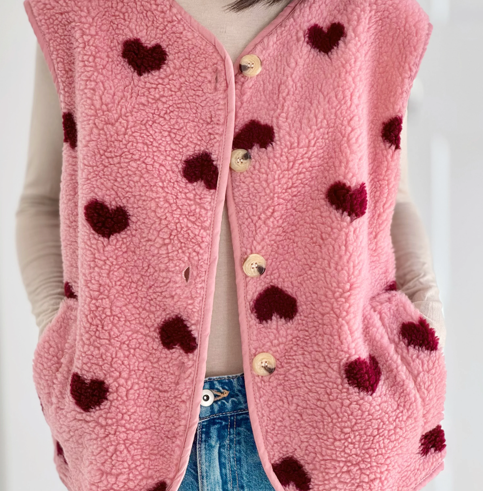 - weiche Teddyweste mit Herzchenprint