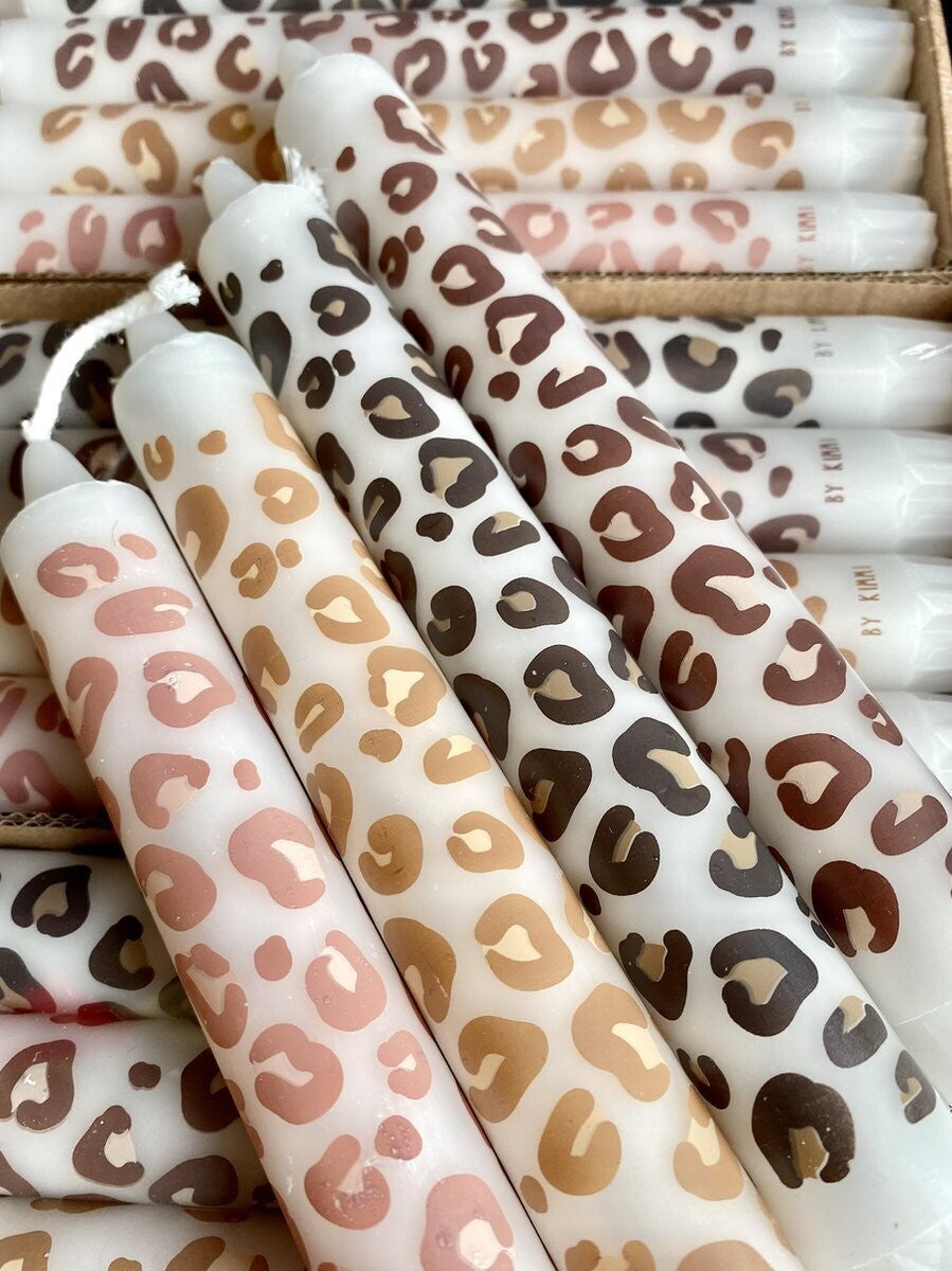 - 4er Set Stabkerzen mit handgezeichnetem Leoparden Design