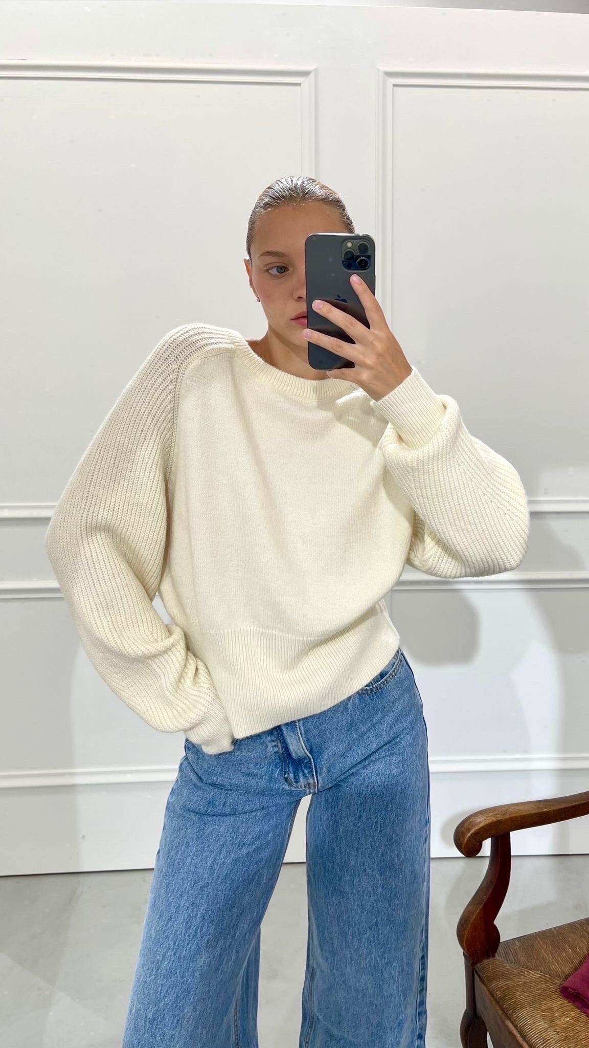 Kuscheliger Pulli in modernem cremeweiss und hellgrau