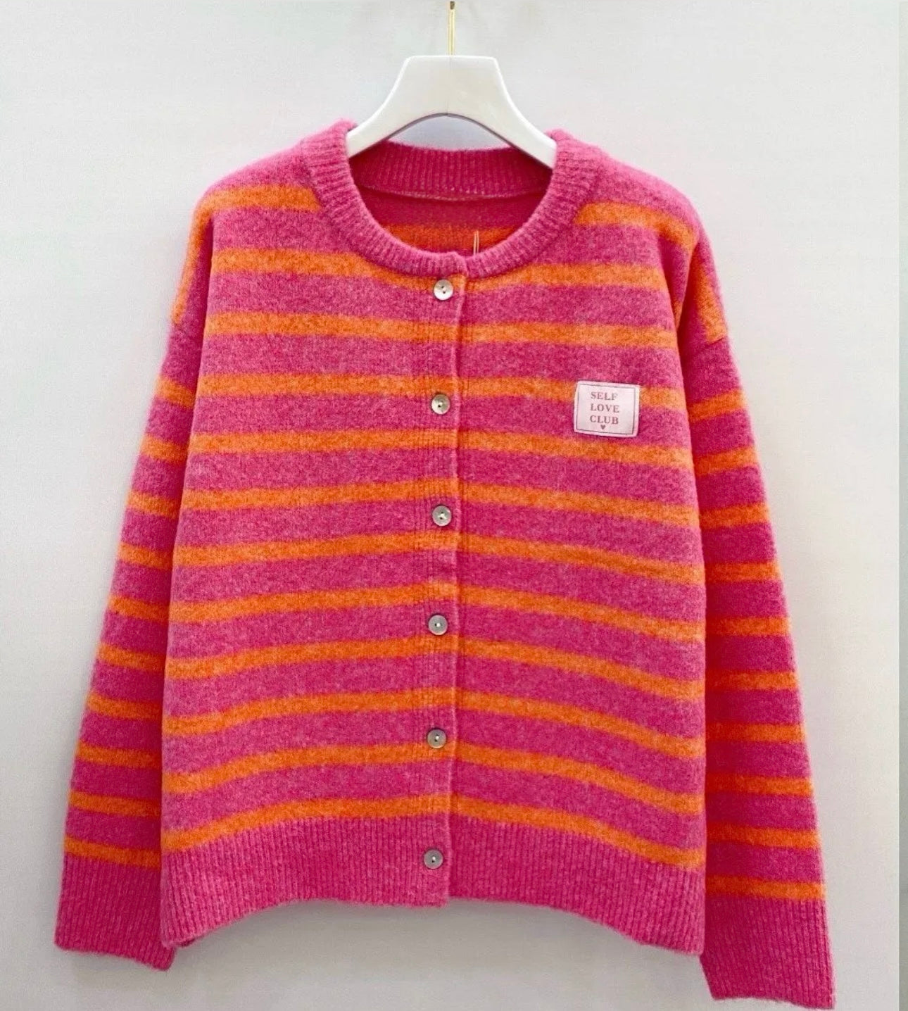 GESTREIFTER CARDIGAN "SELF LOVE CLUB"