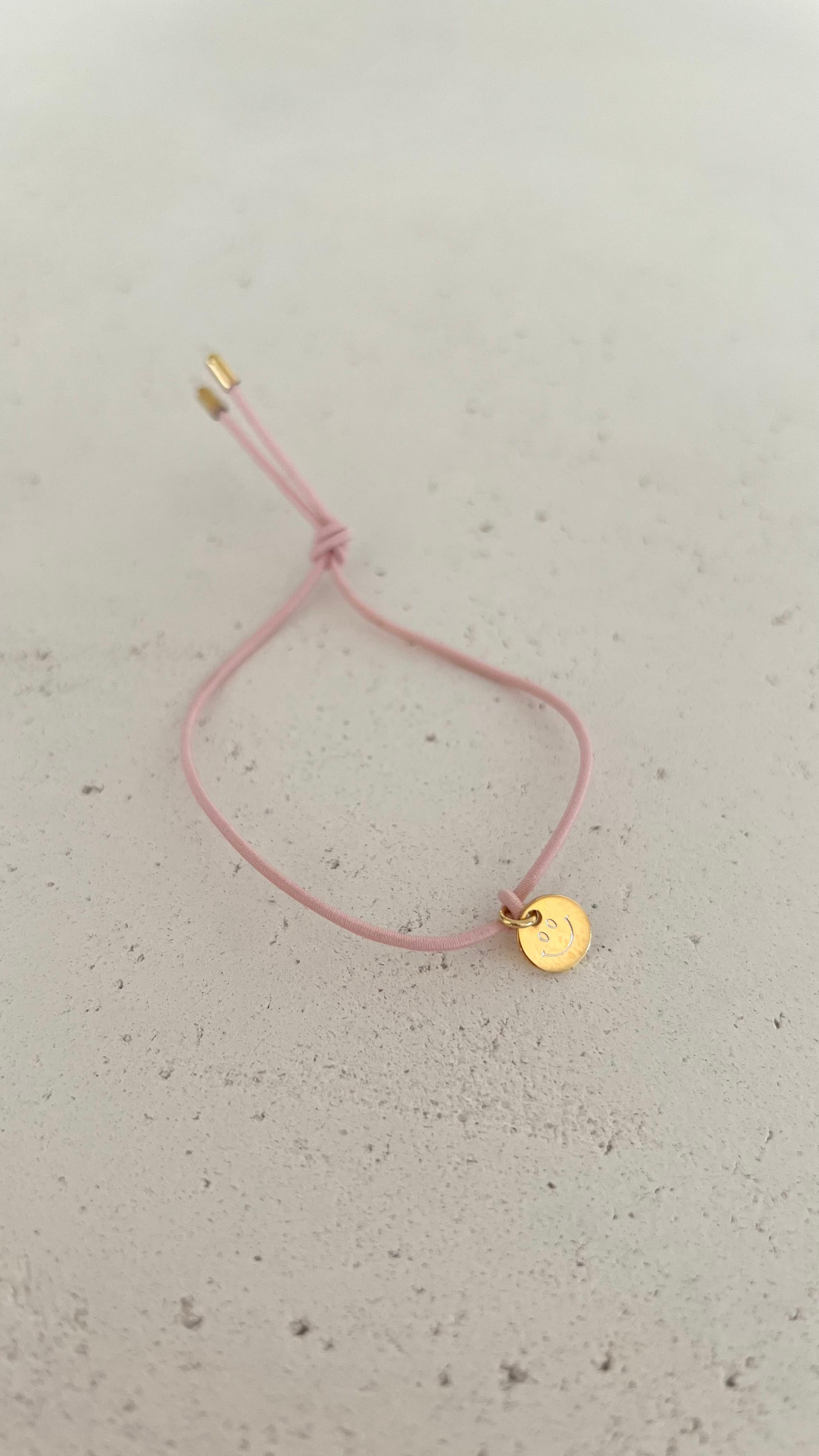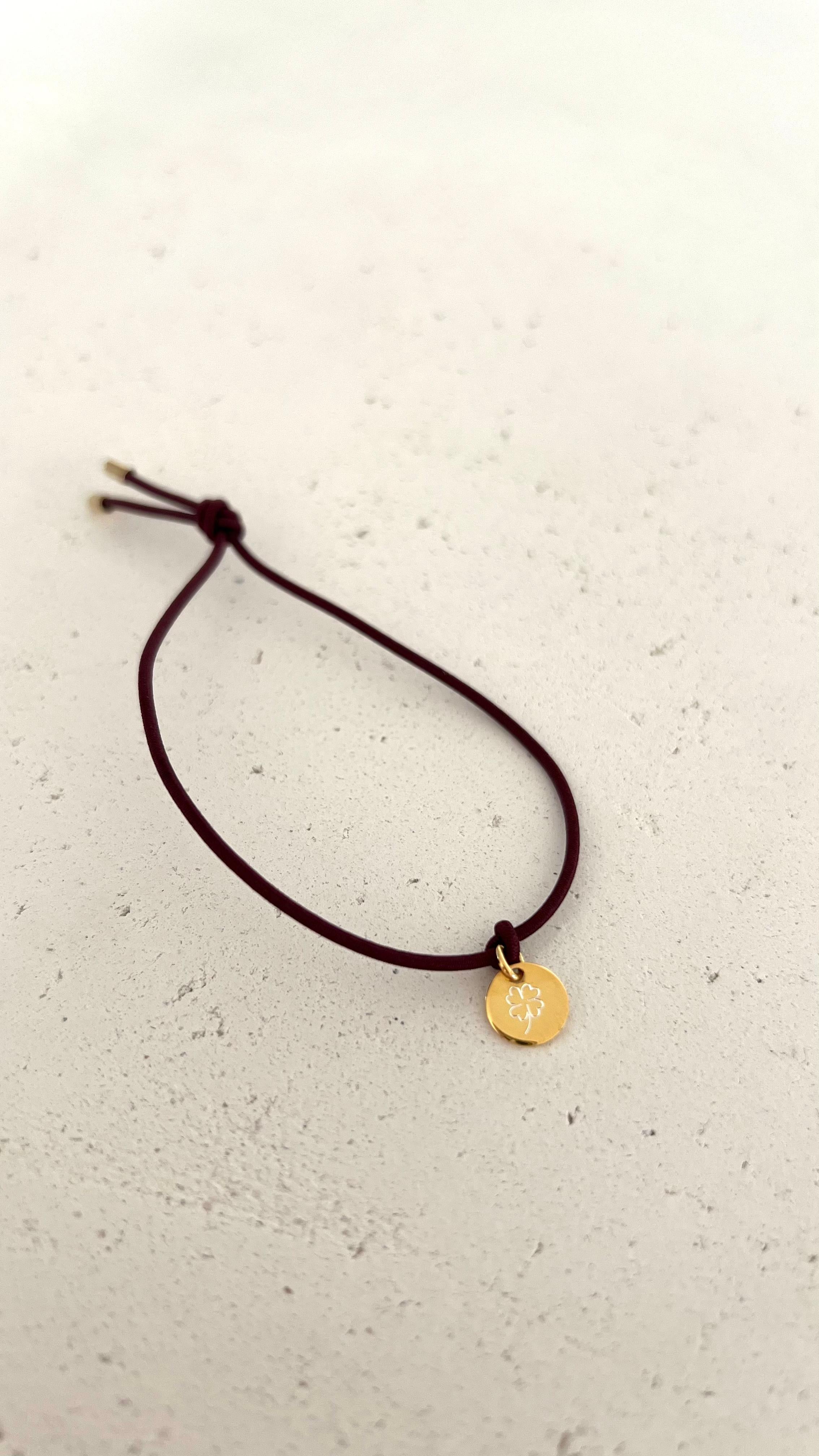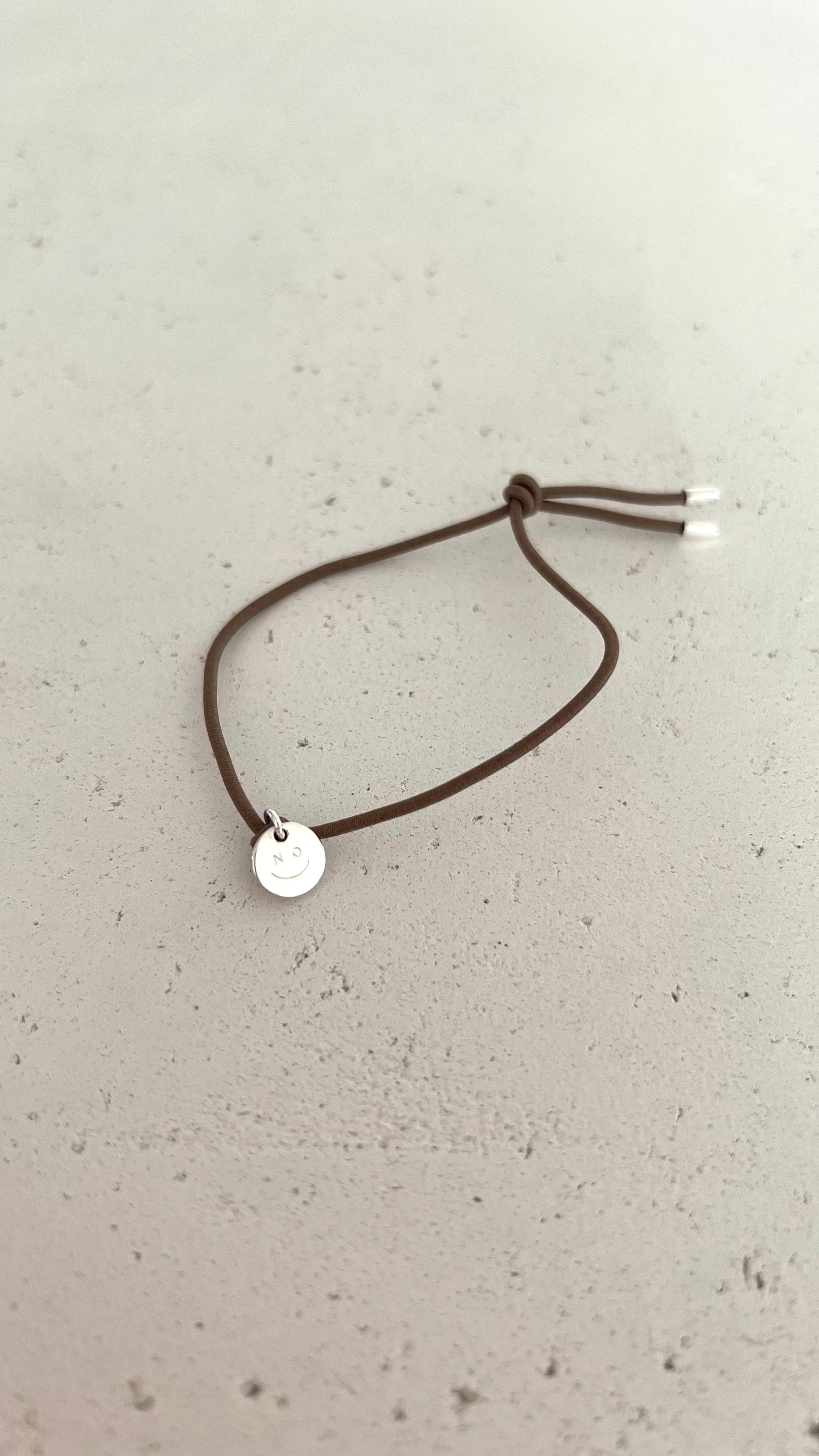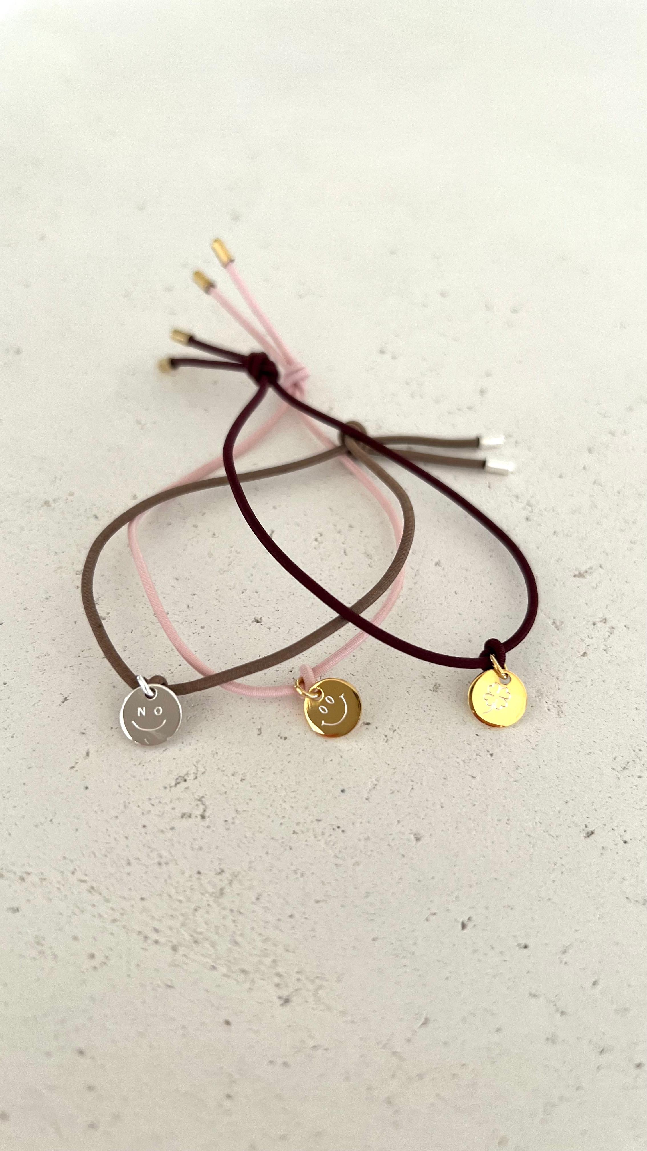 Nylon- Armband mit handgravierter Plakette aus Silber oder 18Kt Vergoldung. Die Motive – Kleeblatt, Smiley oder No-Smiley – werden mit viel Liebe zum Detail von Hand in unserer Werkstatt in Stuttgart graviert und machen jedes Stück besonders.