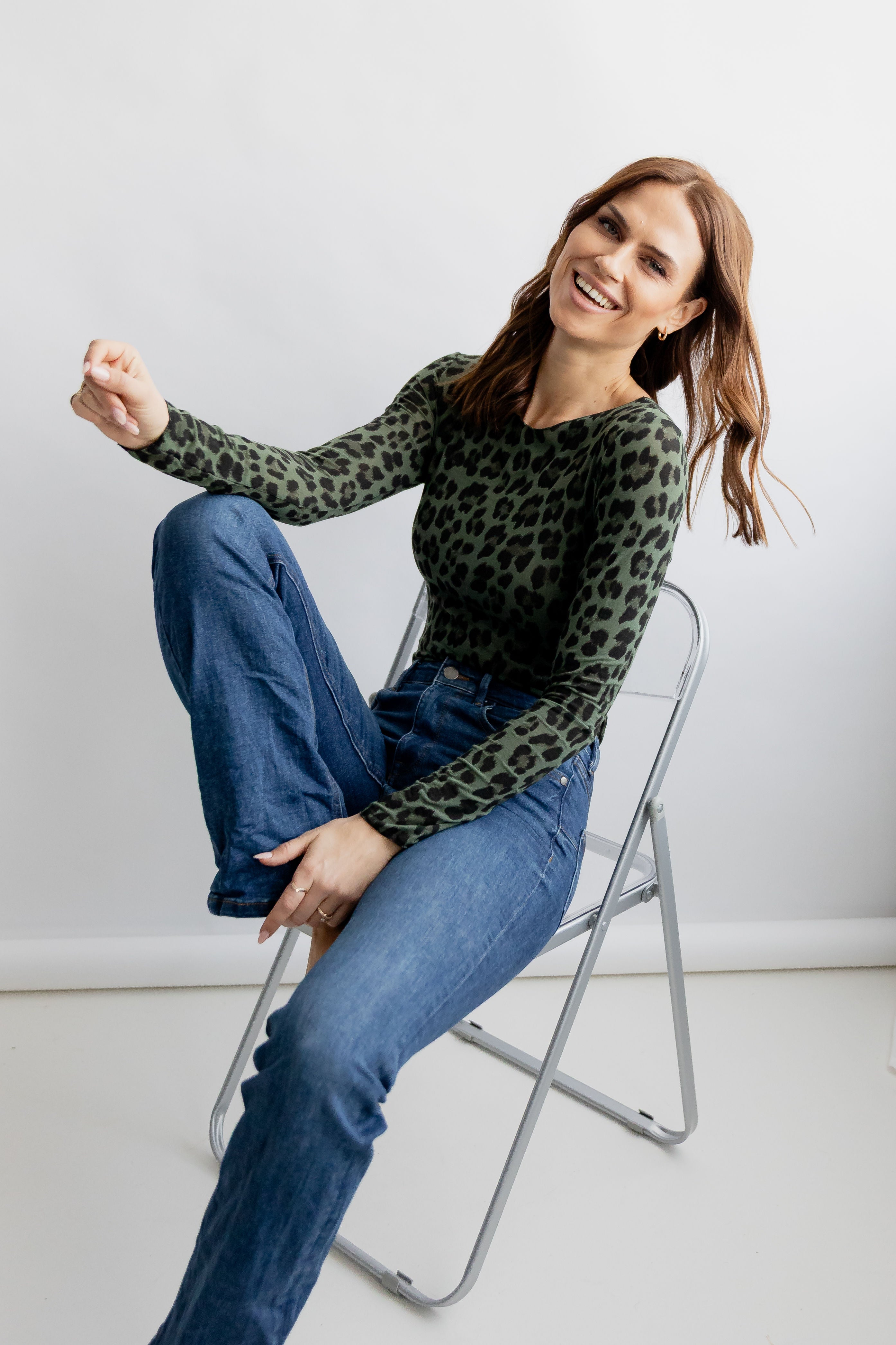 - halbtransparentes Longsleeve mit Leoprint