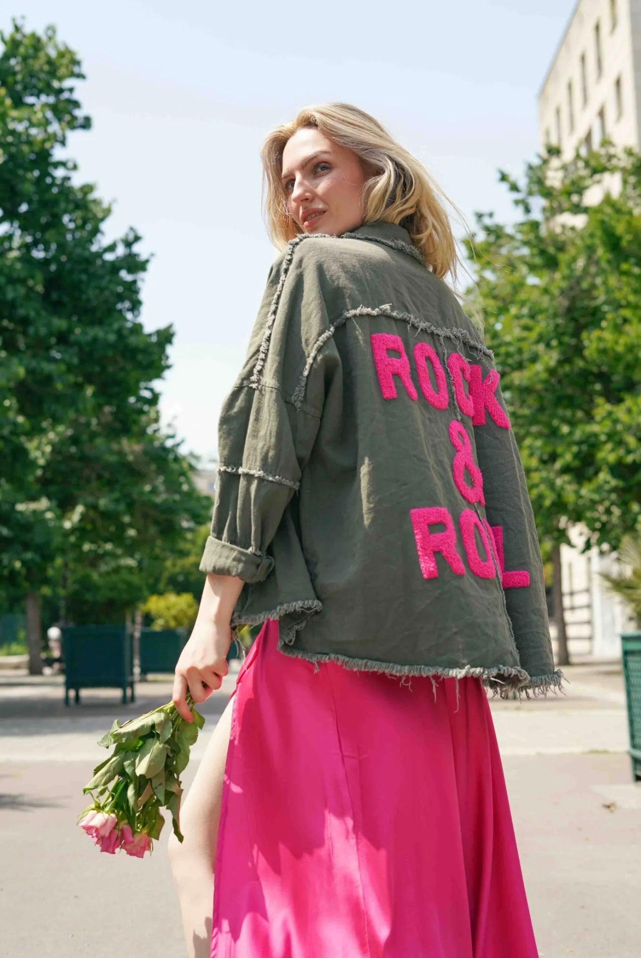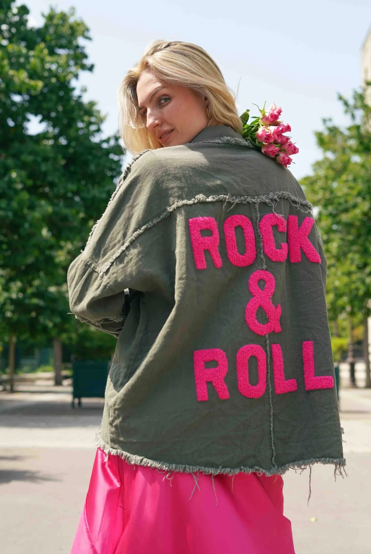 - mit pinken Rückenflock „Rock&Roll“ und Fransendetails