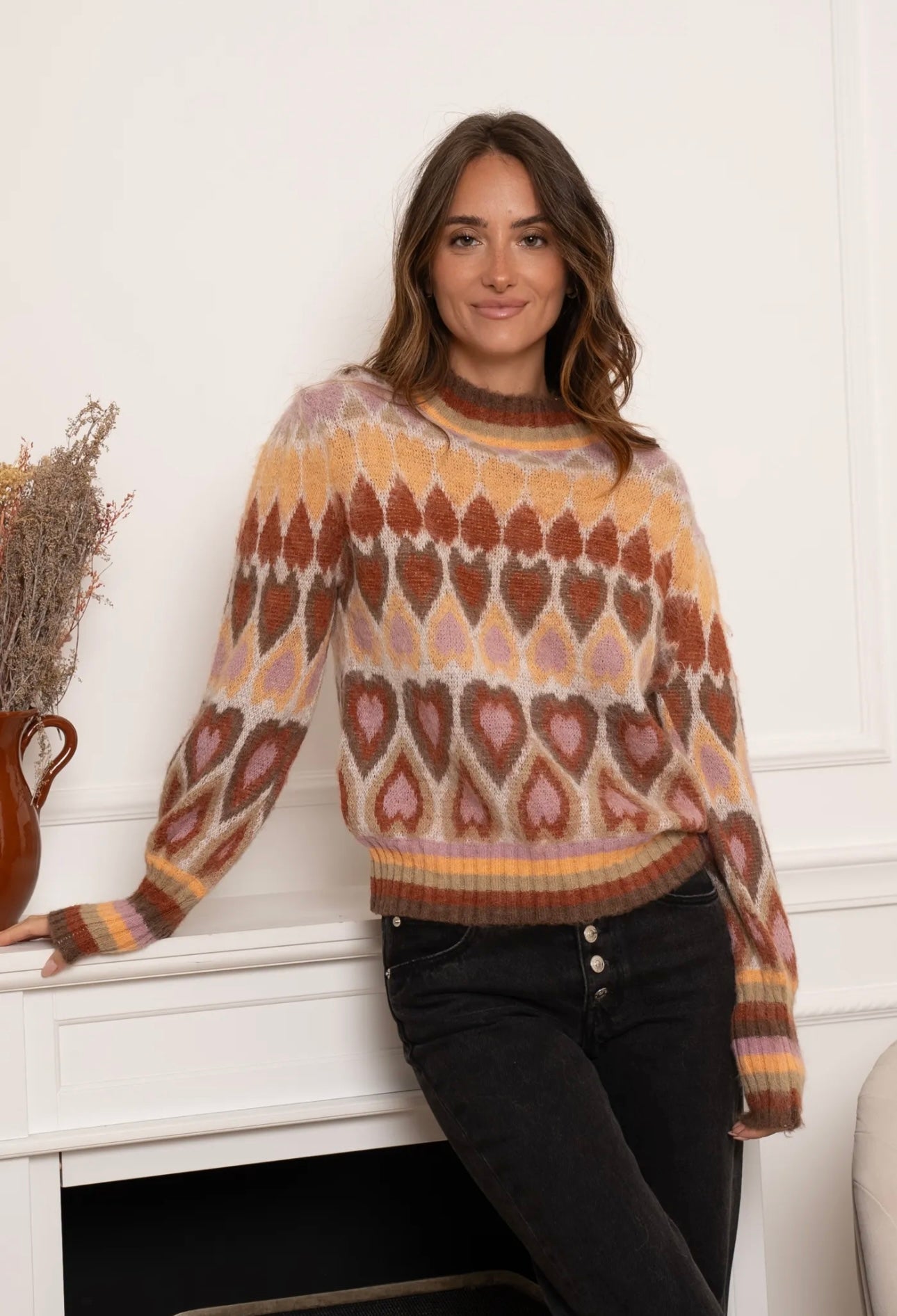 - Pullover mit bunten Herzen auf Vorder- und Rückseite