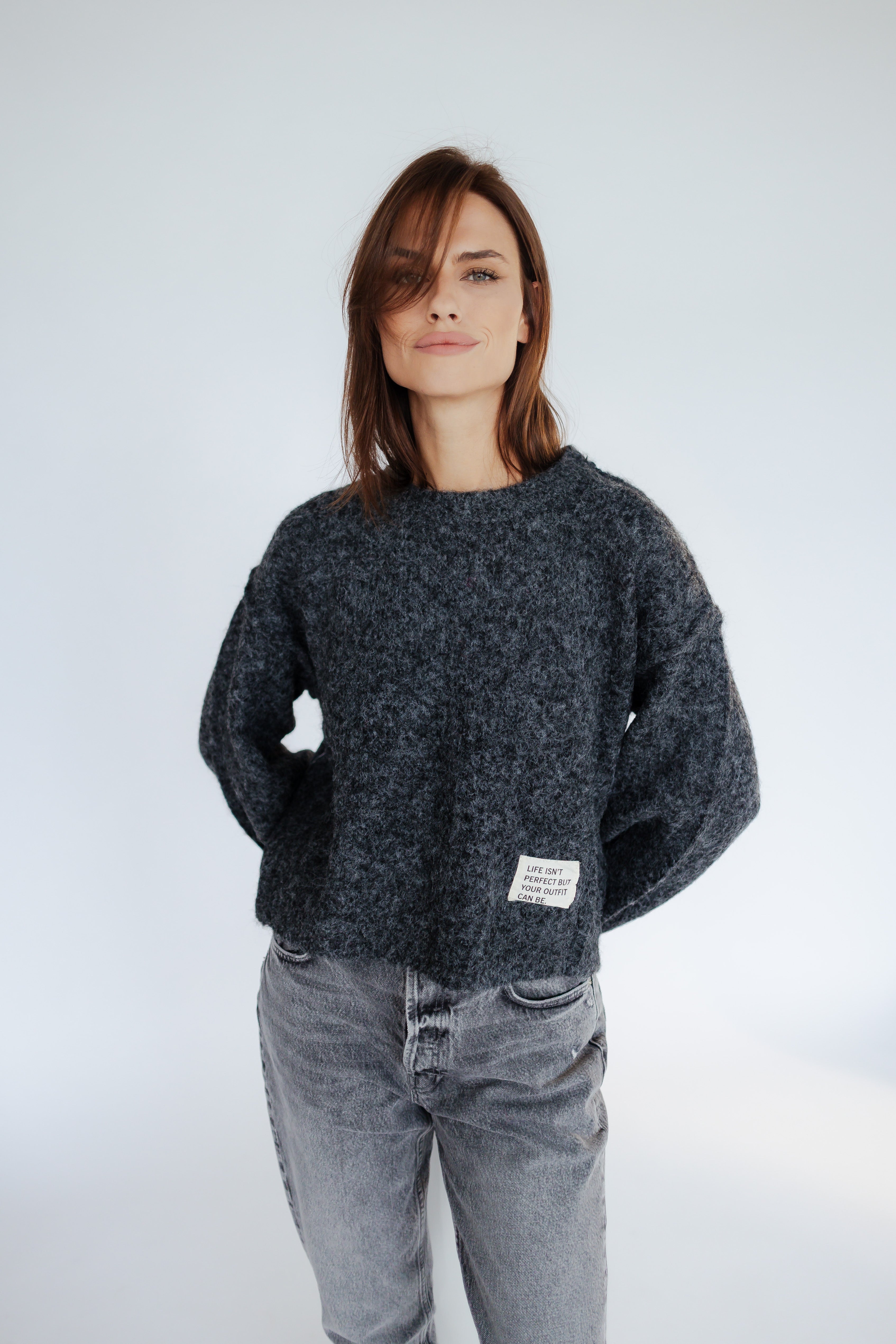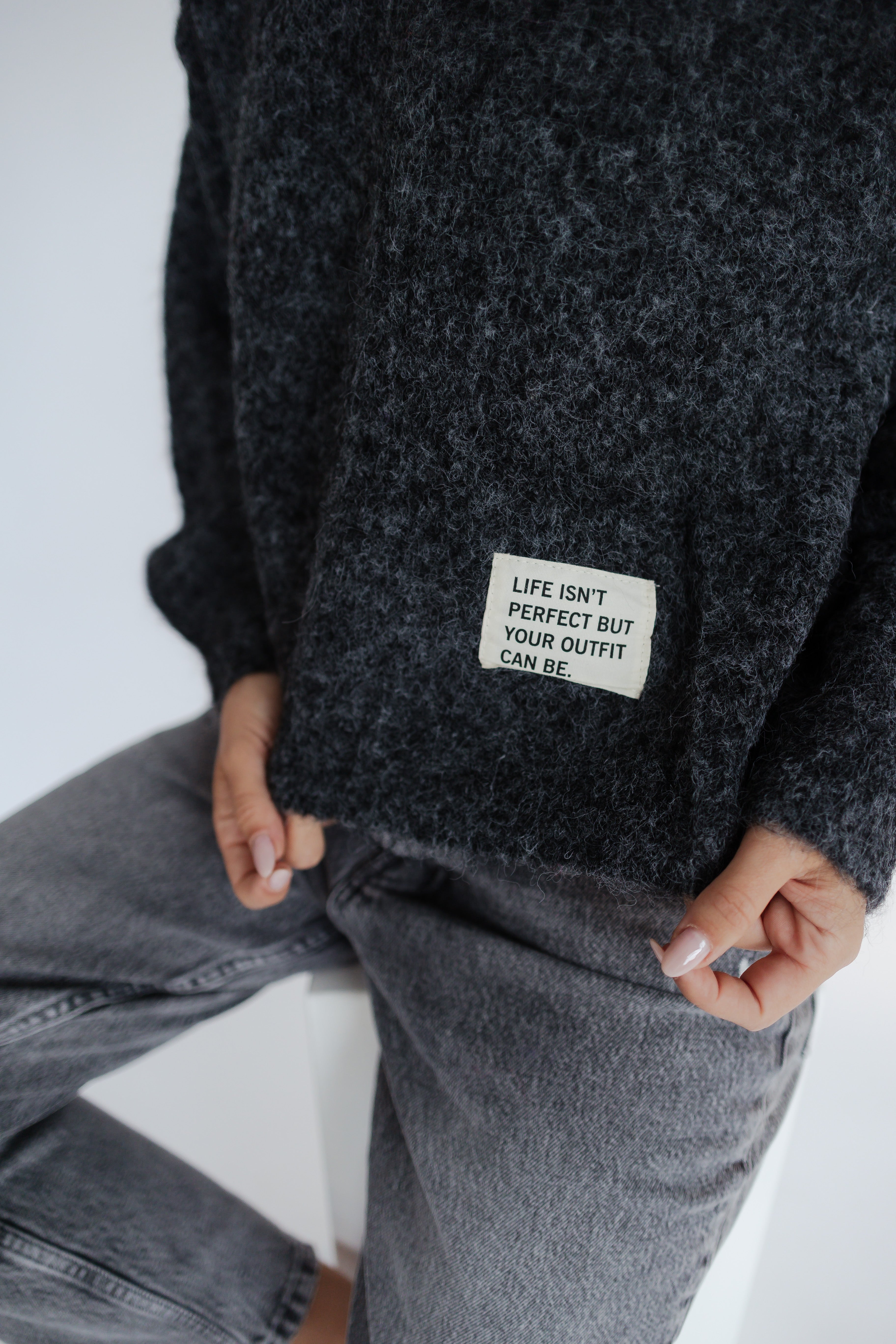 FLUFFY STRICKPULLI MIT STATEMENT-LABEL